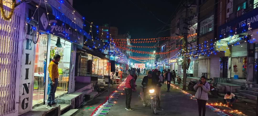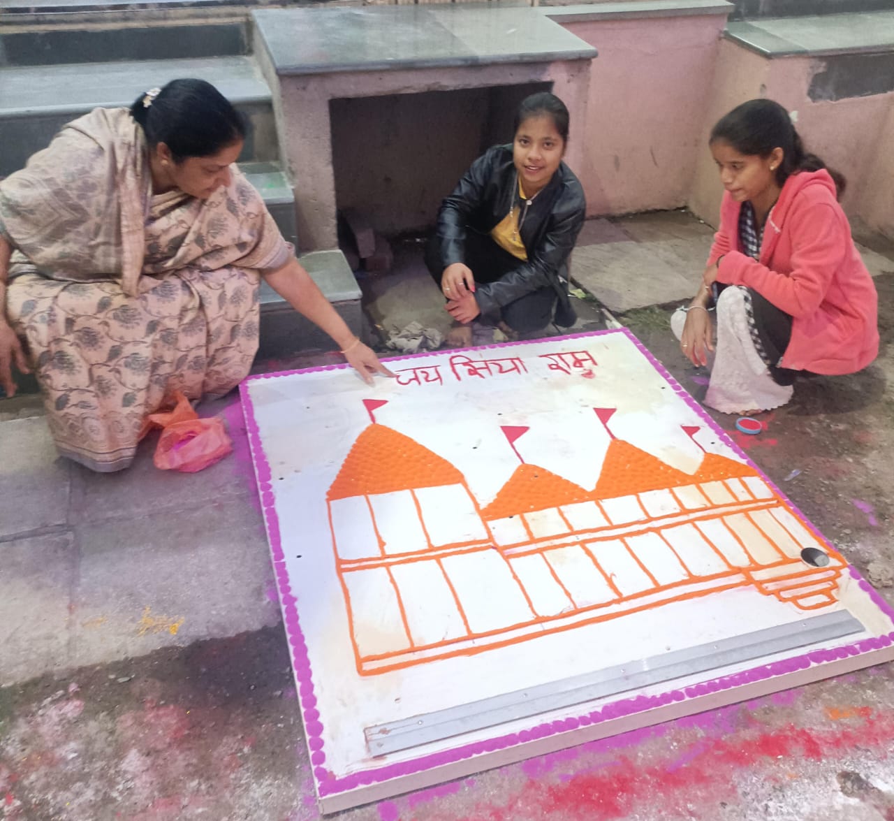 तीन दिन से चल रही तैयारी में सभी मोहल्ले के बच्चे,युवा,बुजुर्ग व महिलाओं ने अपने-अपने स्तर पर रामपथ को सजाने में कोई कसर नहीं छोड़ी, प्रातः से पूरी सड़क की सफाई व धुलाई करवा के सड़क के दोनों साइड विद्युत सज्जा,कस्तूरबा चौक के दोनों तरफ भव्य स्वागत द्वार,शाहजी चौराहे पर रामलला की दिव्य झांकी से सजा हुआ स्टेज व पूरे मोहल्ले में आकर्षक रंगोलिया,सड़क के दोनों ओर सफेद-लाल लाइनों पर रंगोलिया के साथ में 5100 दीपो की सज्जा प्रमुख आकर्षण का केंद्र रही।