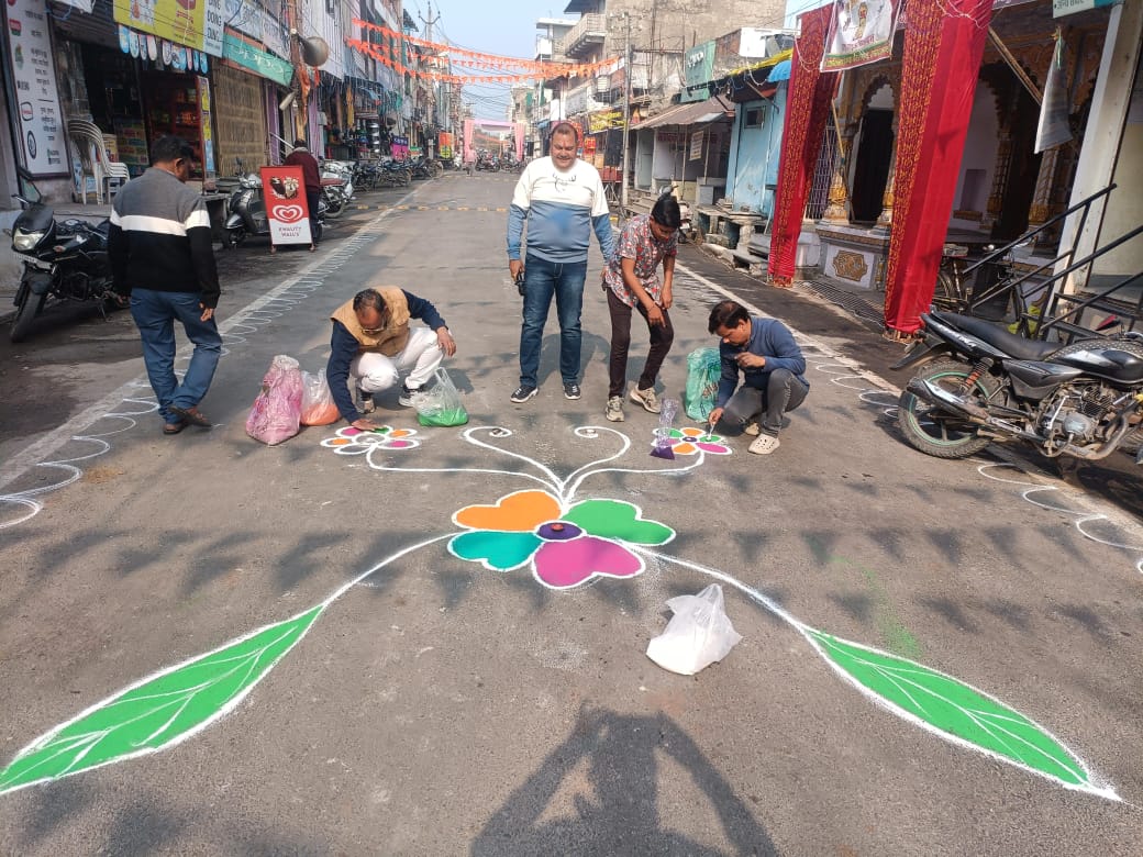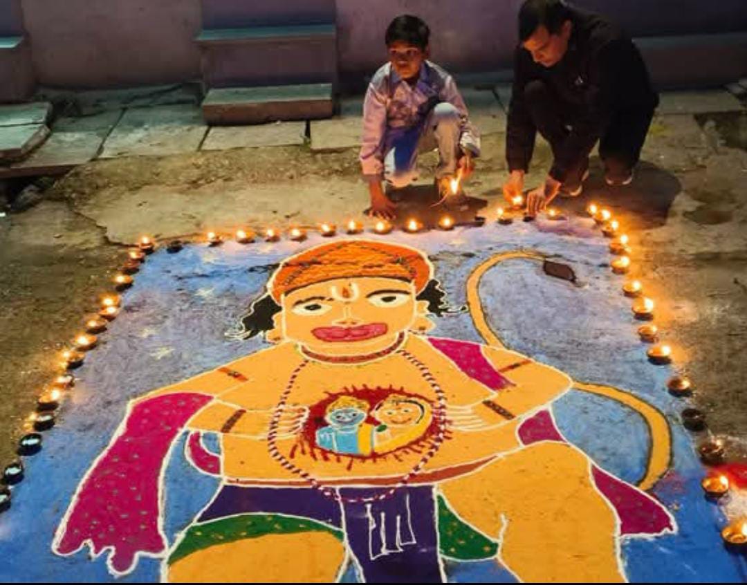 पूरे दिन भजनों की मधुर ध्वनि से वातावरण आनंद विभोर रहा। इसमें भी भगवान श्री हनुमान जी की व भव्य मंदिर की रंगोली ने सभी को आकर्षित किया।
