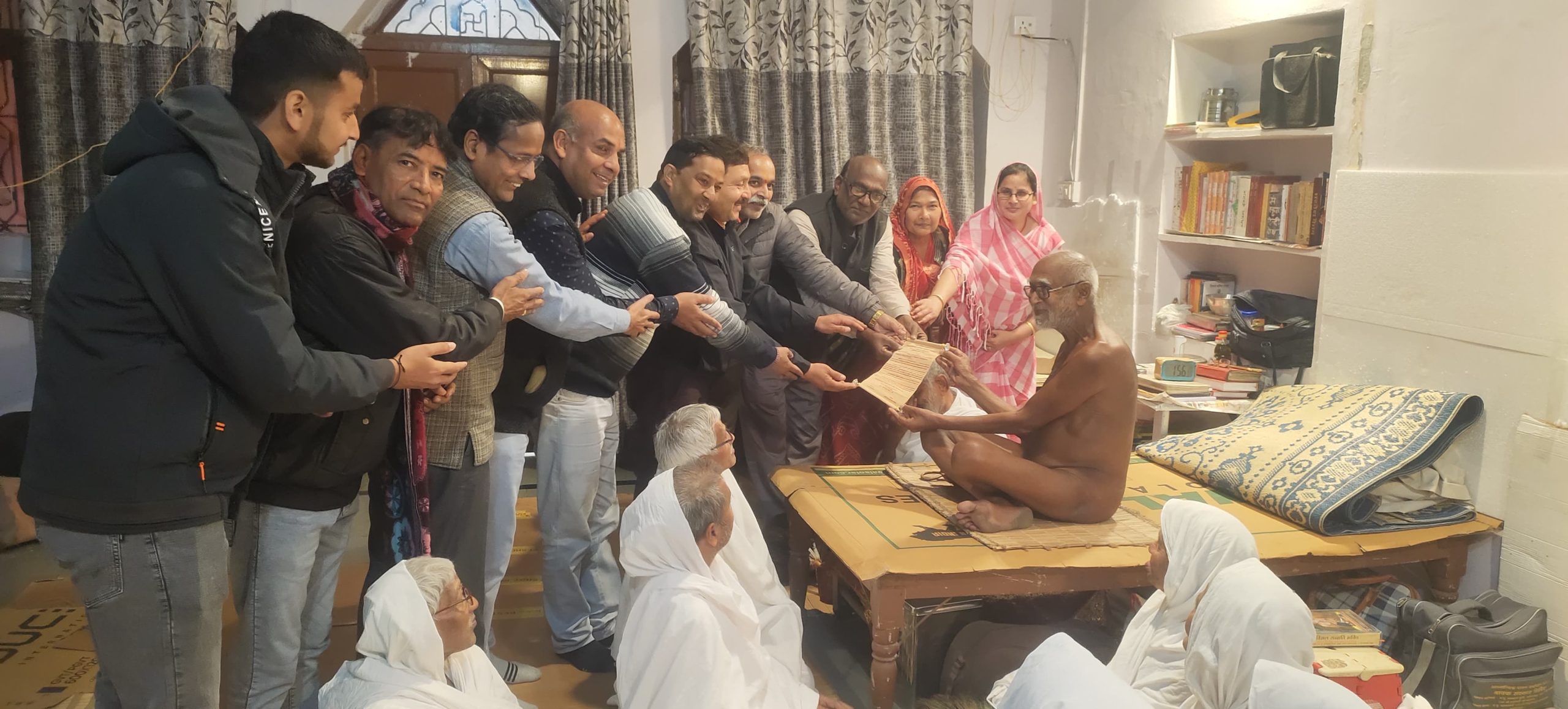 अन्तर्राष्ट्रीय स्तर पर आयोजित होने वाला पट्टाचार्य महोत्सव की आमंत्रण पत्रिका भेंट कीसुमति धाम भक्त परिवार ने बालाचार्य निपूर्ण नन्दी महाराज संध से लिया आशीर्वाद