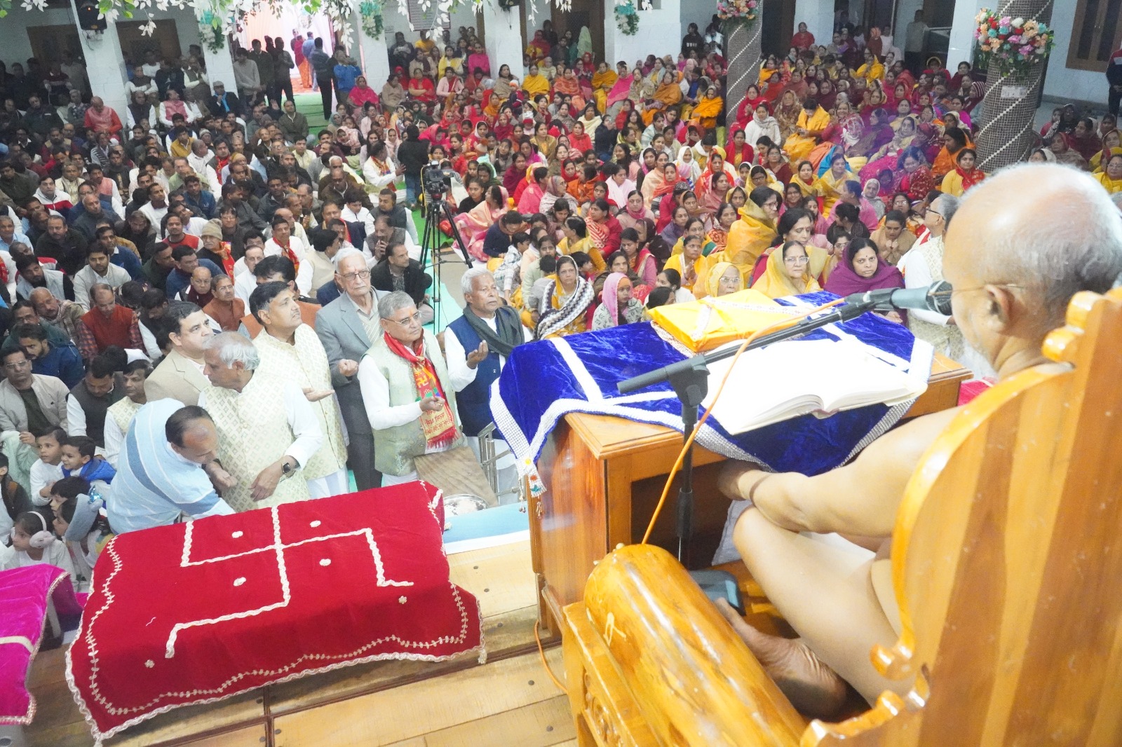 मंत्री प्रकाश जैन व प्रचार मंत्री राजकुमार लुहाडिया ने जानकारी देते हुए बताया कि आज प्रातः काल गुरुदेव के मुख से भगवान की शांतिधारा कराई गई व सामूहिक रूप से गुरुदेव की पूजन की गई। आज की धर्म सभा मे श्रेष्ठी श्री मोहनलाल कैलाश यतीश खेड़ा वाला परिवार ने गुरु के समक्ष जिनवाणी विराजमान कर पाद प्रक्षाल करने का सौभाग्य प्राप्त किया। आज गुरुभक्त यतीश जी खेड़ा की वैवाहिक वर्षगाँठ के अवसर पर गुरुवर से सपरिवार आशीष प्राप्त किया।