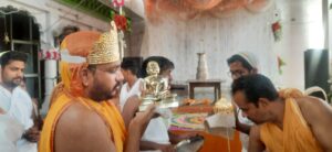 वही इस अनुपम बेला में इससे पूर्व 108कलशों से विधिवत मंत्रों के साथ श्रीजी का अभिषेक किया गया। समस्त क्रियाए आकाश भया व प्रशान्त भया के द्वारा सम्पन्न हुई। साथ ही शांतिनाथ दिगंम्बर जैन मंदिर में नित्य नियम पूजन की गयी।