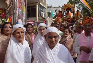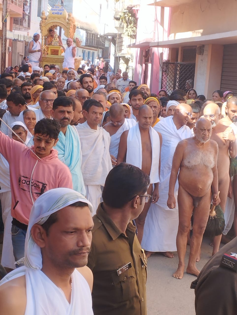 पूज्य मुनि श्री सुधा सागर महाराज के सानिध्य में रथ यात्रा के दौरान पुलिस जवानों ने परिक्रमा कर महाराज श्री का लिया आशीर्वाद आदिनाथ भगवान का निर्वाण महोत्सव धूमधाम से मनाया गया