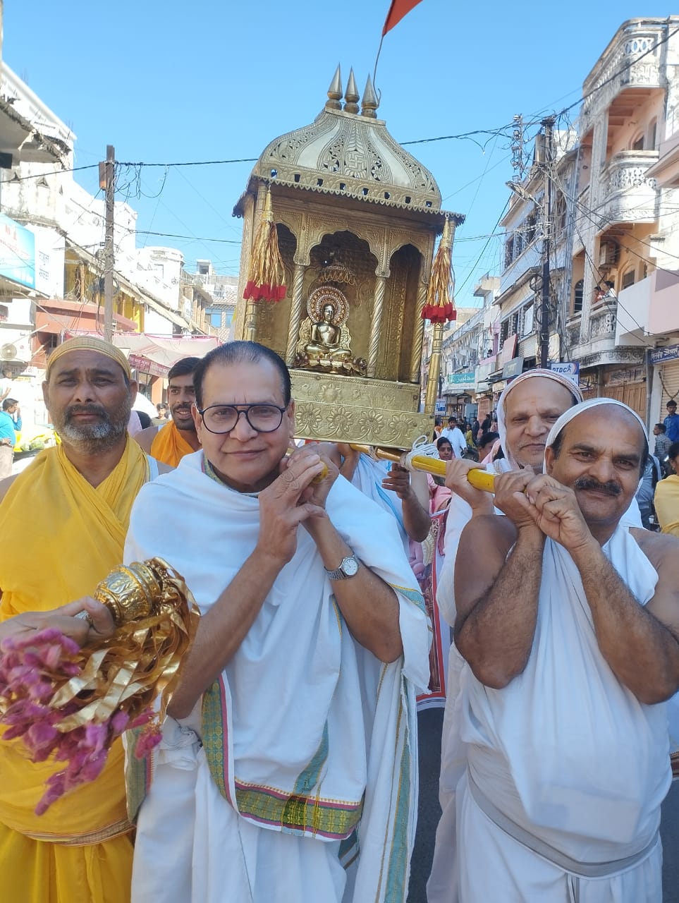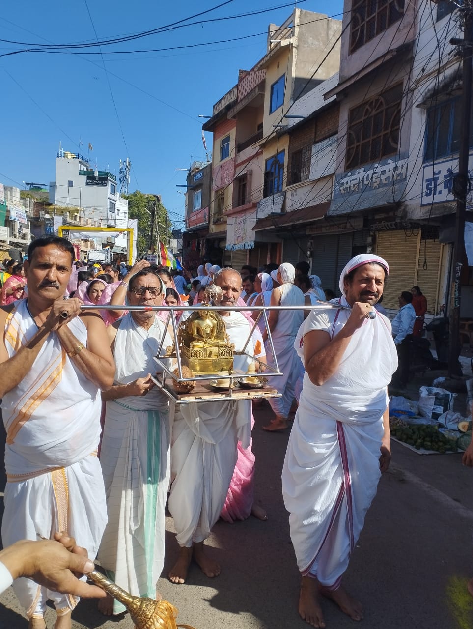 जैन धर्म के प्रथम तीर्थंकर श्री 1008 आदिनाथ भगवान के मोक्ष कल्याणक के अवसर पर परम पूज्य निर्यापक मुनि पुंगव 108 श्री सुधासागर जी महाराज एवम मुनि श्री 108 प्रयोग सागर जी महाराज, आर्यिका 105 श्री मृदुमति माता जी ससंंघ के मंंगल सानिध्य मेंदोपहर 1 बजे से श्री जी की विशाल भव्य शोभायात्रा सिटी नल से प्रारंभ होकर पुराना थाना बाकोली चौराहा,घंटाघर, पलंदी मंदिर ,धगट चौराहा होते हुए सिंघई मंदिर पहुंची।
