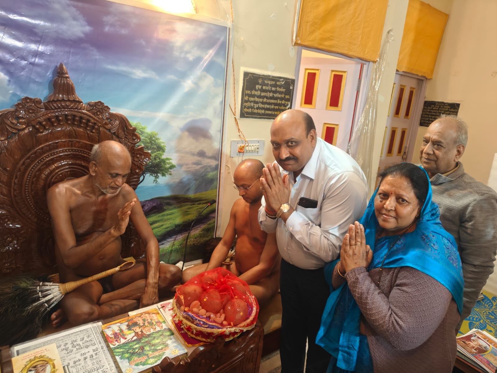 नेमिश्वर धाम जुरहरा में होने वाले 5 मार्च से 9 मार्च को पंच कल्याणक प्रतिष्ठा महोत्सव के सौधर्म इन्द्र श्री मुकेश जैन श्री मति संगीता जैन (सुपुत्र श्री सुरेन्द्र पाल जैन अध्यक्ष शंकर नगर जैन समाज) आज *lआचार्य श्री वसुनंदी जी गुरुदेव* ससंघ के दर्शन कर आशीर्वाद लिया।