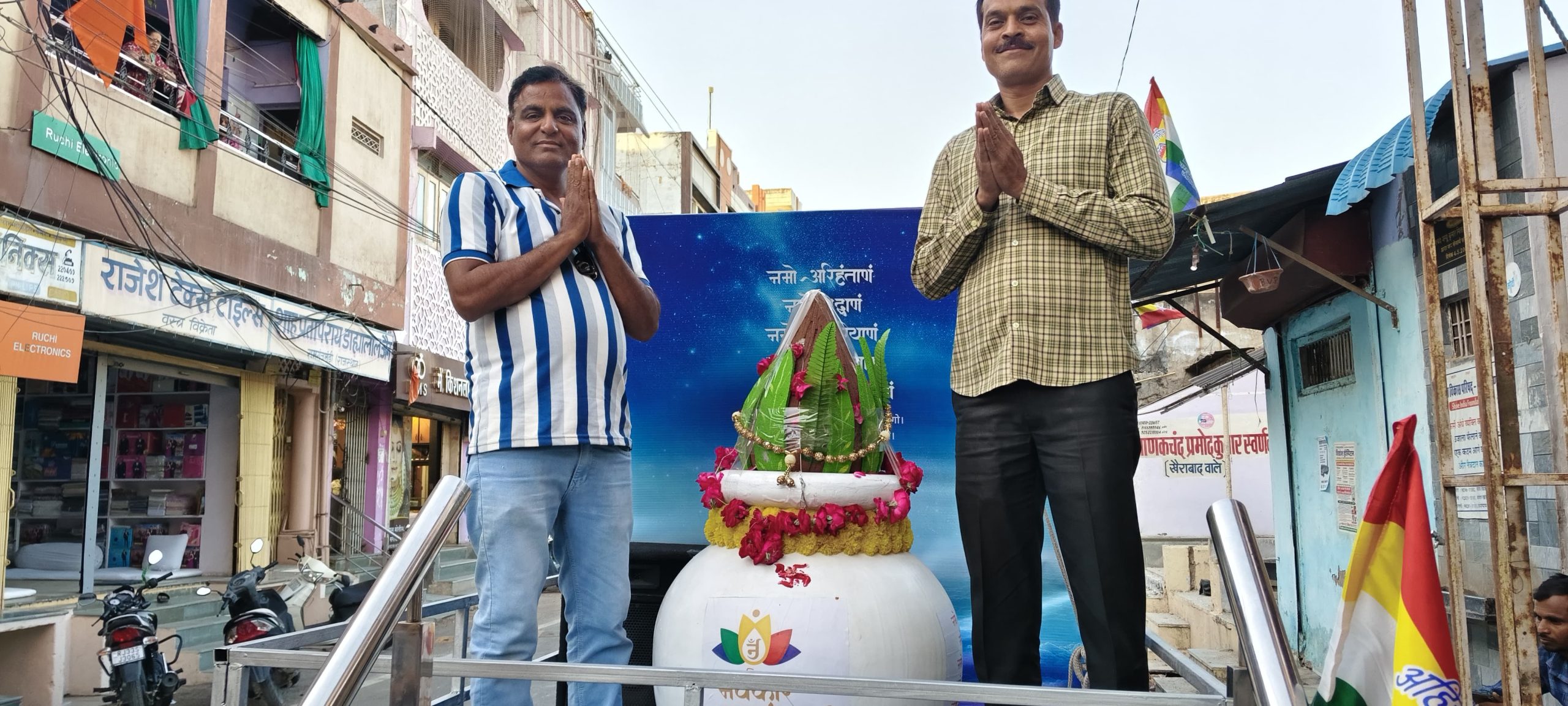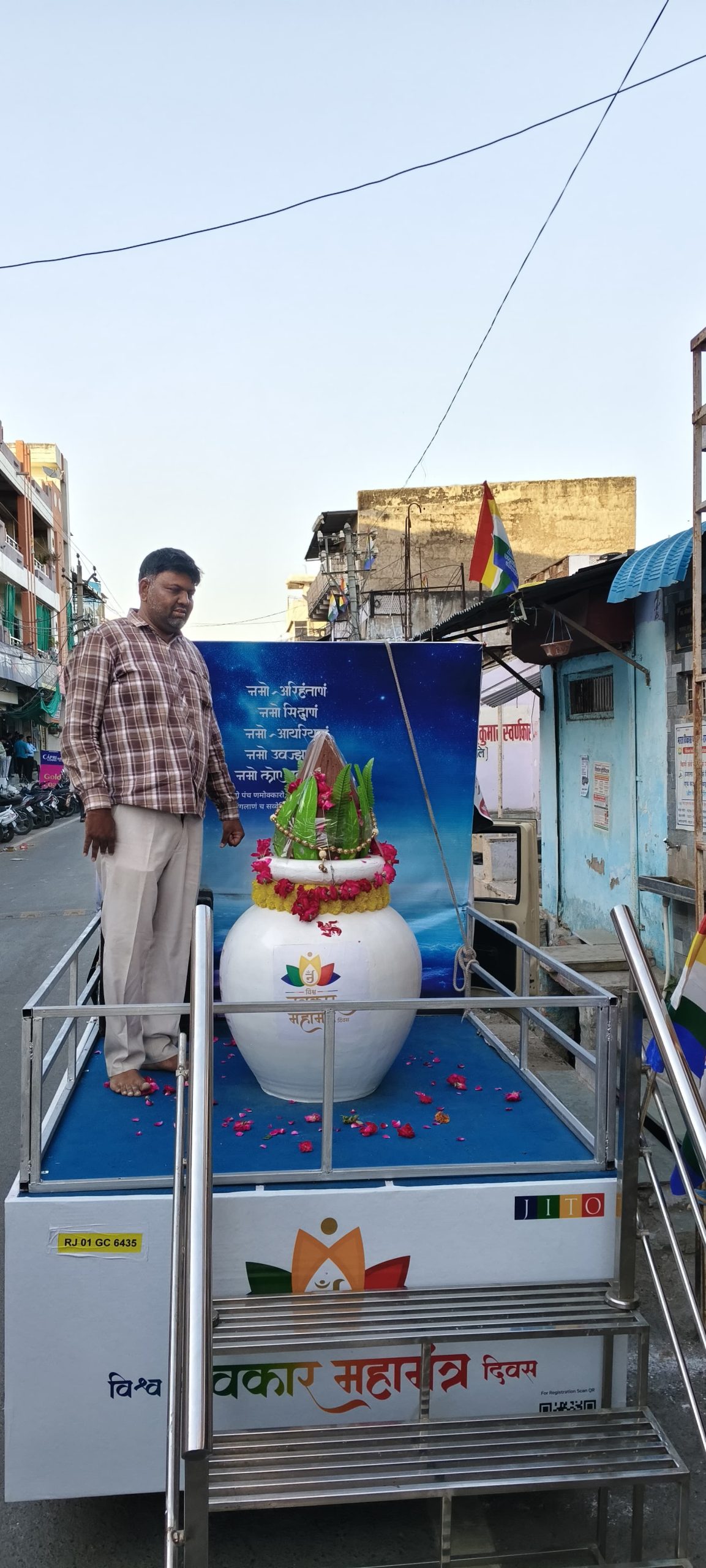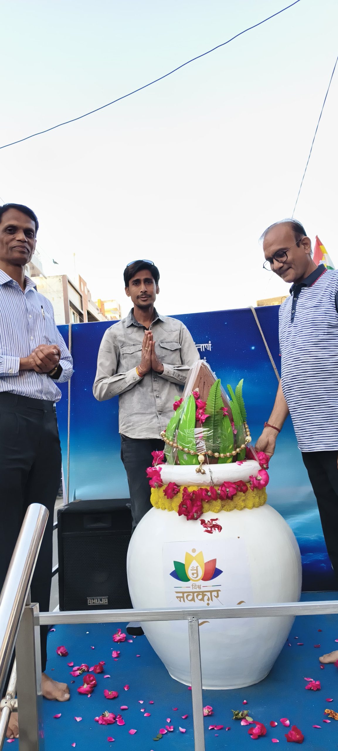 नवकार महामंत्र गुण प्रधान है ना कि धर्म या व्यक्ति प्रधान, जन चेतना के लिए नवकार कलश रथ यात्रा संपूर्ण राजस्थान प्रदेश में जीतो के माध्यम से पहुंच रही हैं,इसी क्रम में आज रामगंजमंडी जैन समाज के मध्य नवकार कलश यात्रा आई हैं जिसका यहां पर श्री शांतिनाथ दिगंबर जैन मंदिर बाजार नंबर एक रामगंज मंडी में पूजन अर्चन कर स्वागत किया![]()