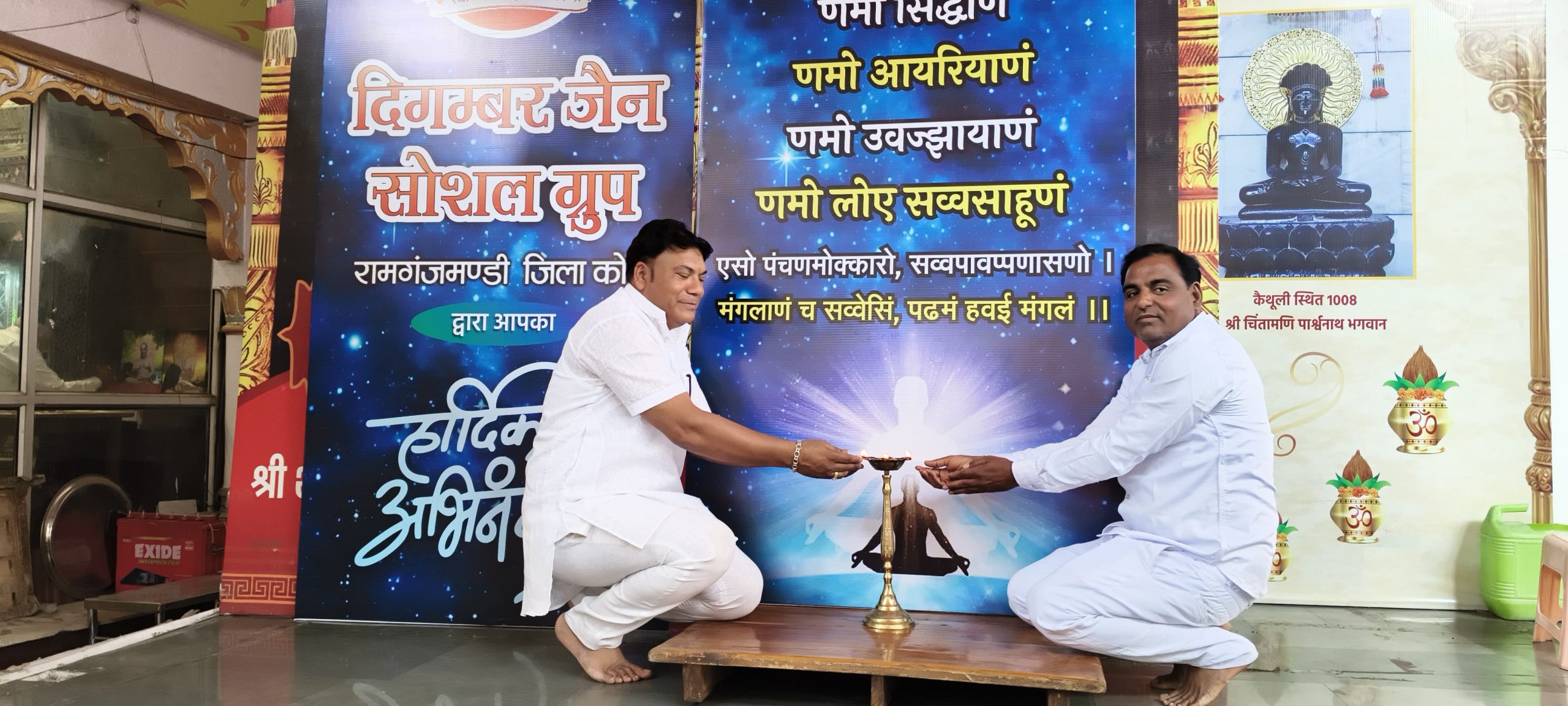 इसी कड़ी में रामगंजमंडी में भी णमोकार महामंत्र का जाप किया गया श्री शांतिनाथ दिगंबर जैन मंदिर के सभा परिसर में णमोकार की ध्वनि से वातावरण अलौकिक था। समाज के सभी बंधु सपरिवार सहित प्रातः बेला में मंदिर जी में पहुंचे एवं प्रातः 8:00 बजे से 9:30 बजे तक णमोकार मंत्र का अविरल भक्ति से ओतप्रोत होकर विश्व शांति की कामना लिए णमोकार मंत्र का जाप किया।