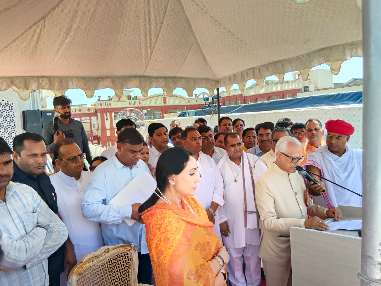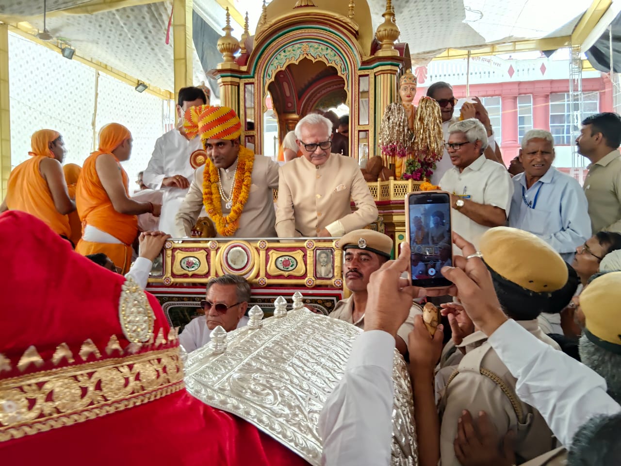 तत्पश्चात उप मुख्यमंत्री दिया कुमारी ने मंदिर प्रांगण से निकलने वाली रथयात्रा को जयकारों के बीच जैन ध्वज दिखाकर रवाना किया।