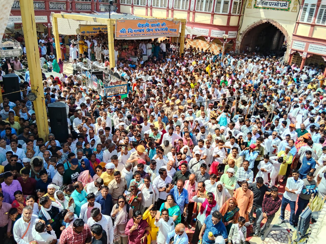 ,13 अप्रैल । करौली जिले में स्थित दिगम्बर जैन अतिशय क्षेत्र श्री महावीरजी के वार्षिक मेले के तहत रविवार, 13 अप्रैल को भगवान महावीर की भव्य रथयात्रा निकाली गई । रथयात्रा में श्रद्धा का सैलाब उमड़ पड़ा । रथयात्रा को प्रदेश की उप मुख्यमंत्री दिया कुमारी ने जैन ध्वज दिखाकर जयकारों के बीच रवाना किया।