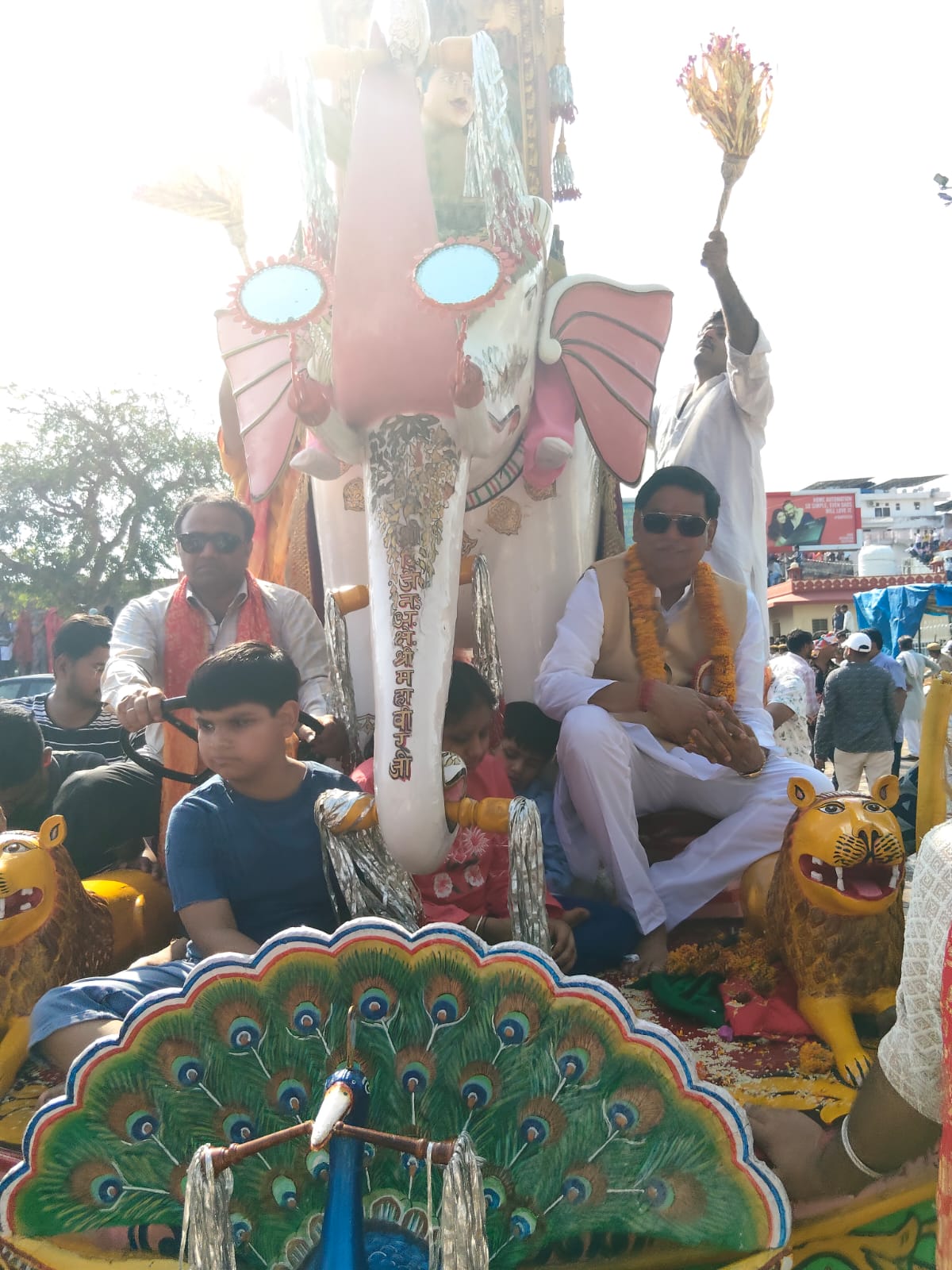 उपजिला कलेक्टर , हिण्डौन हेमराज गुर्जर व प्रबन्धकारिणी कमेटी के अध्यक्ष सुधांशु कासलीवाल सारथी के रूप में बैठे थे । वही रथ की स्टेयरिंग को संयुक्त मंत्री प्रदीप कुमार जैन सम्हाले हुए थे। रथ पर कमेटी के उपाध्यक्ष शांति कुमार जैन, मानद् मंत्री सुभाष चन्द जैन, कोषाध्यक्ष विवेक काला एवं कार्यकारिणी सदस्य हेमन्त सोगानी चॅवर ढुला रहे थे । रथयात्रा के साथ प्रबंधकारिणी समिति के सदस्य नरेश कुमार सेठी , जस्टिस नगेन्द्र कुमार जैन, जस्टिस नरेन्द्र कुमार जैन, पूनम चन्द शाह,सुधीर कासलीवाल सहित मेले के प्रचार संयोजक विनोद जैन कोटखावदा ,रमेश तिजारिया, सुभाष चन्द जैन पाण्डया, अशोक जैन नेता , महेश काला , भानू छाबडा , मनीष बैद, योगेश टोडरका, भारतभूषण जैन, राजेश बड़जात्या,सुभाष पाटनी, पदम भौंसा, अनिल जैन बनेठा,