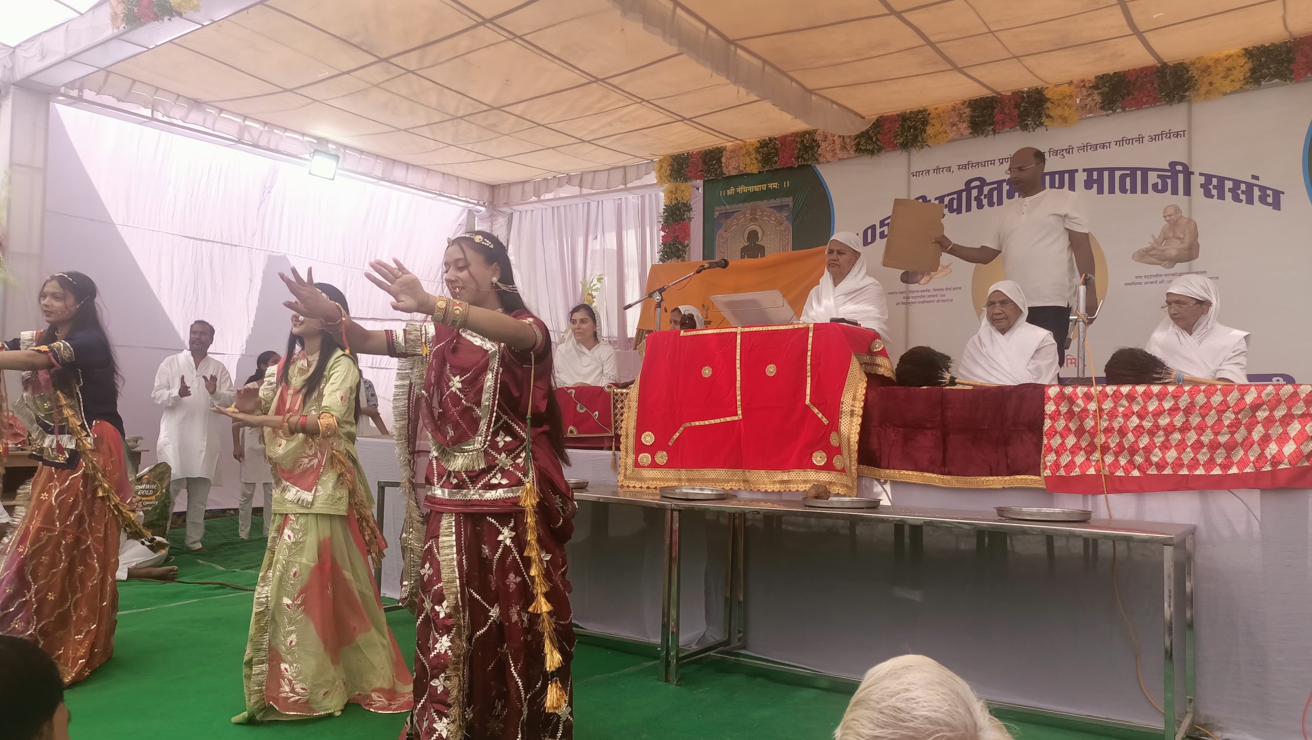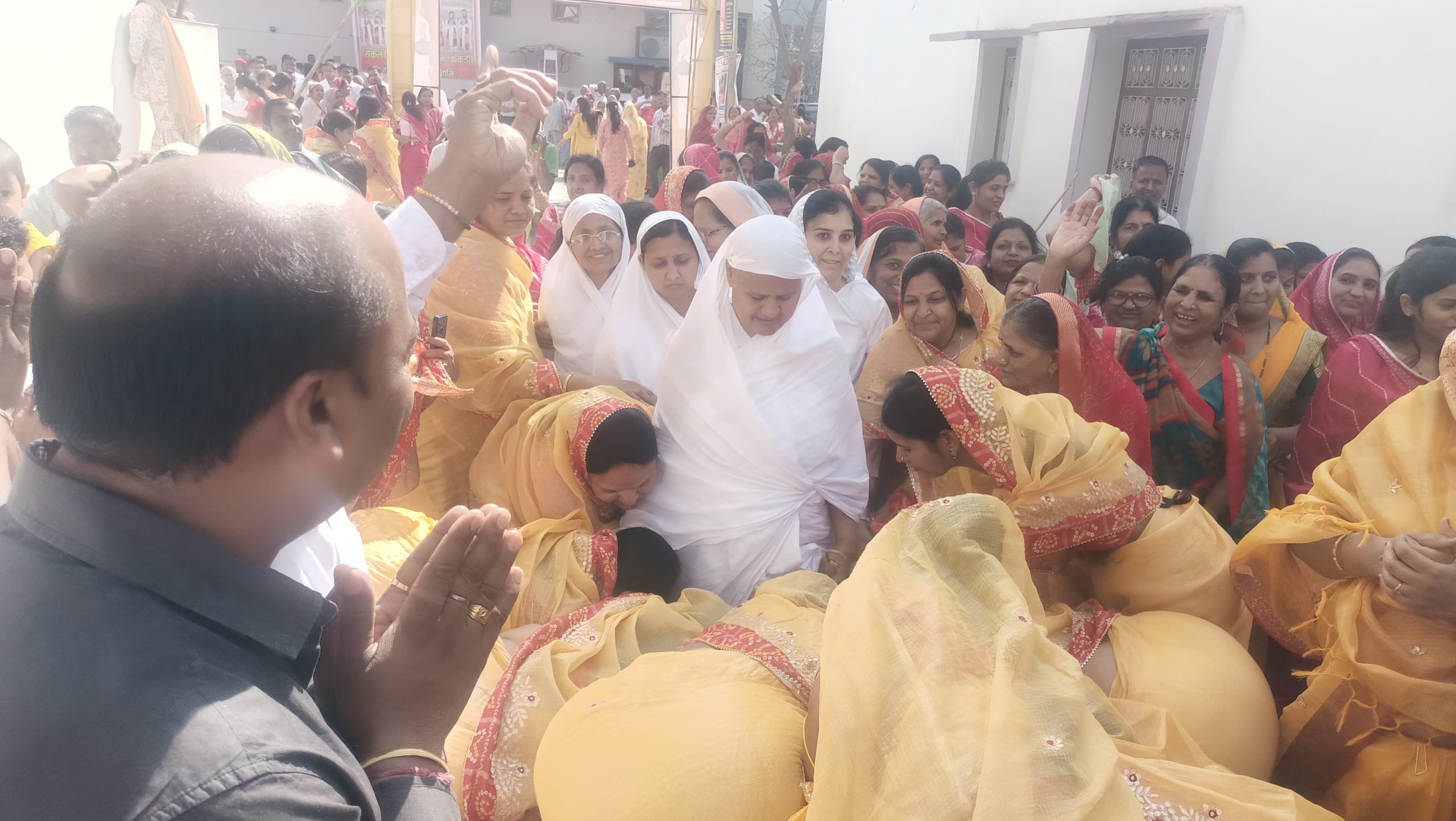 गुरु मा की आगवानी में सकल दिगम्बर जैन समाज महिला मंडल राजुल महिला मंडल ,शांतिनाथ बहू मंडल,विशुद्ध वर्धिनी महिला मंडल, आदिनाथ बहू मंडल, वामा महिला मंडल, त्रिशला महिला मंडल, दिगंबर जैन महिला मंडल , महिला महासमिति सकल दिगंबर जैन समाज की सभी महिलाएं व पुरुष सम्मिलित हुए ।