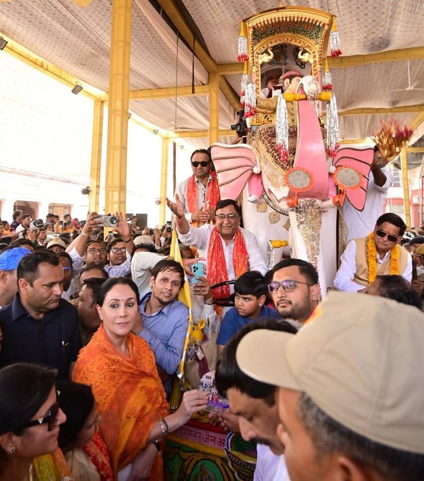 उप मुख्यमंत्री दिया कुमारी ने श्री महावीरजी के किए दर्शनदिया कुमारी ने जैन ध्वज दिखाकर रथयात्रा को किया रवानानिवाई से 51 सदस्यों के दल ने श्री महावीरजी में की पूजा अर्चना