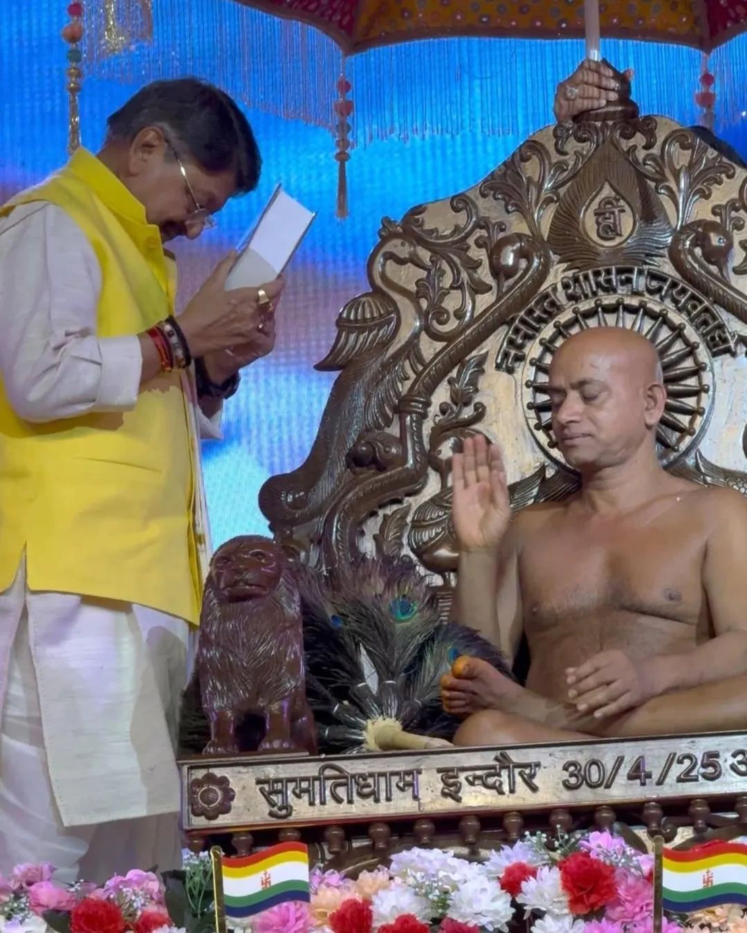 “इंदौर में मैंने इतने साधु-संतों का एक साथ ऐसा भव्य समागम पहले कभी नहीं देखा। यह दृश्य अविस्मरणीय और गौरवपूर्ण है। मां अहिल्या की नगरी आज पुण्यभूमि बन गई है। आज देश में बढ़ती अशांति और हिंसा को संतों की साधना और तप ही रोक सकते हैं। जब तक इस धरती पर पानी और अग्नि हैं, तब तक जिन शासन रहेगा। आप सभी संत समाज को शांति और अहिंसा का मार्ग दिखाएं।”