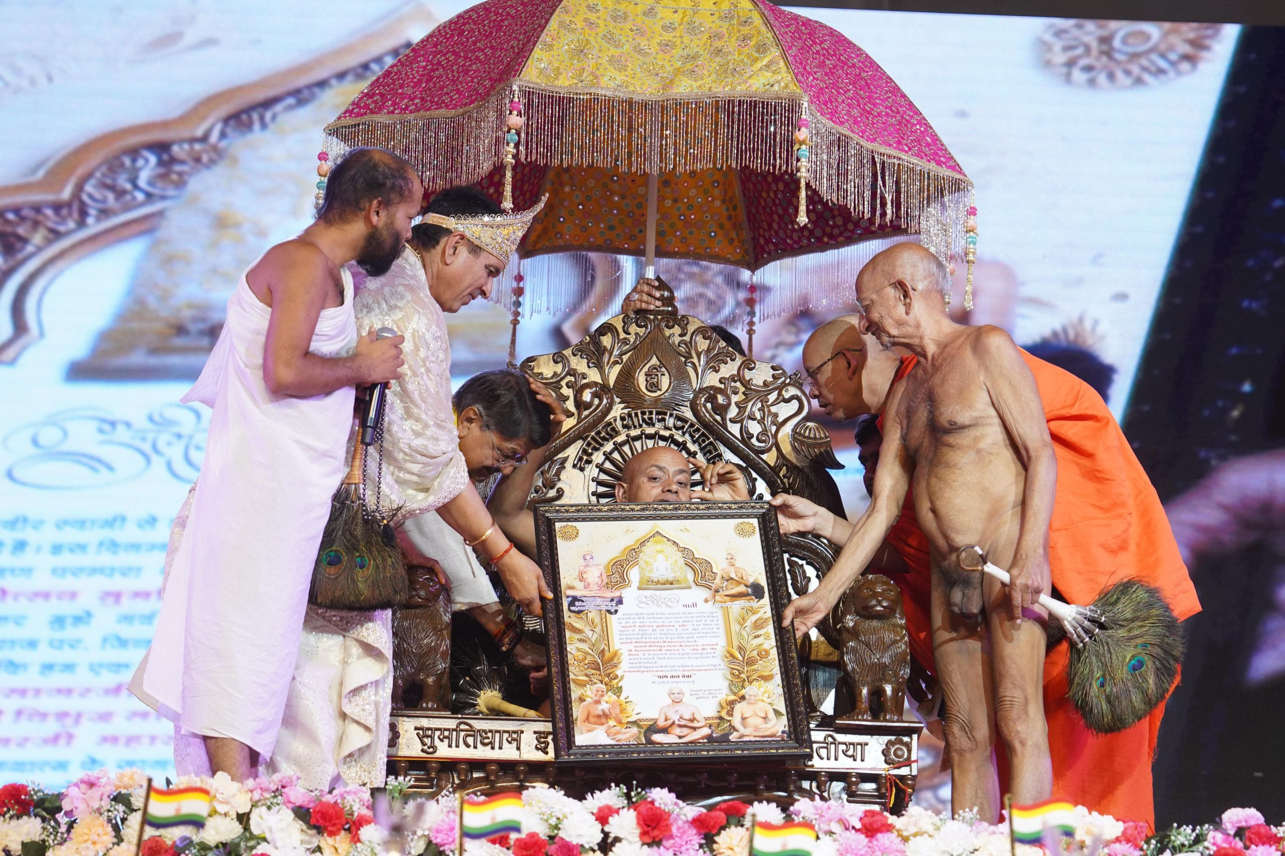 अक्षय तृतीया के विशेष अबूझ मुहूर्त में 12 आचार्यों ने हाथ थामकर जैसे ही आचार्य विशुद्ध सागर जी महाराज को पट्टाचार्य सिंहासन पर विराजित किया, पूरा पंडाल शंखनाद, नगाड़ों, घंटियों, ढोल-मंजीरों और लाखों श्रद्धालुओं की तालियों की गूंज से गूंजायमान हो उठा। दक्षिण दिशा से आए भट्टारक स्वामी जी ने मंत्रोच्चार किया, वहीं मुनि महाराज और आर्यिकाओं ने पाद प्रक्षालन कर आशीर्वाद प्राप्त किया और ‘नमोस्तु’ कहा।