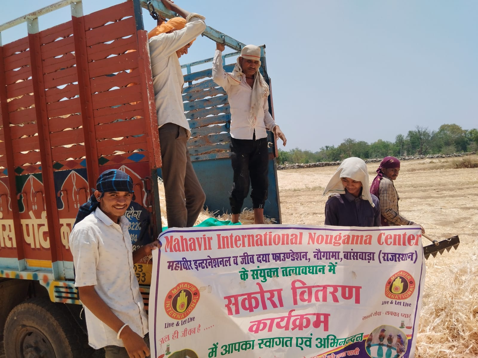 महावीर इंटरनेशनल शाखा नोगामा एवं जीव दया परिवार की ओर से आज नौगामा एवं बालावाड़ा गांव में घास संग्रह कर बागीदौरा गौशाला में भेजी गई इस अवसर पर महावीर इंटरनेशनल शाखा के अध्यक्ष सुरेश चंद्र गांधी ने बताया कि गत एक माह से नोगामा एवं आसपास के गाँवो से जहां भी किसानों द्वारा घास उपलब्ध करवाई जा रही है उन्हें शाखा के वीर सदस्य के सहयोग से गौशाला में भेजी जा रही है एवं इस भीषण गर्मी को देखते हुए महावीर इंटरनेशनल के द्वारा पशु पक्षियों के लिए चिन्हित स्थानों पर पानी की टंकीया रखवाई गई है जहां पर ग्रामीणों व जीव दया प्रेमी सदस्यो के सहयोग से प्रतिदिन पानी की टंकियां भरवाई जा रही है एवं इस भीषण गर्मी को देखते हुए आसमान में उड़ने वाले इन प्यासे पक्षियों के लिए परिंडे वितरित किया जा रहे हैं एवं प्रमुख स्थानों पर बांधे जा रहे हैं