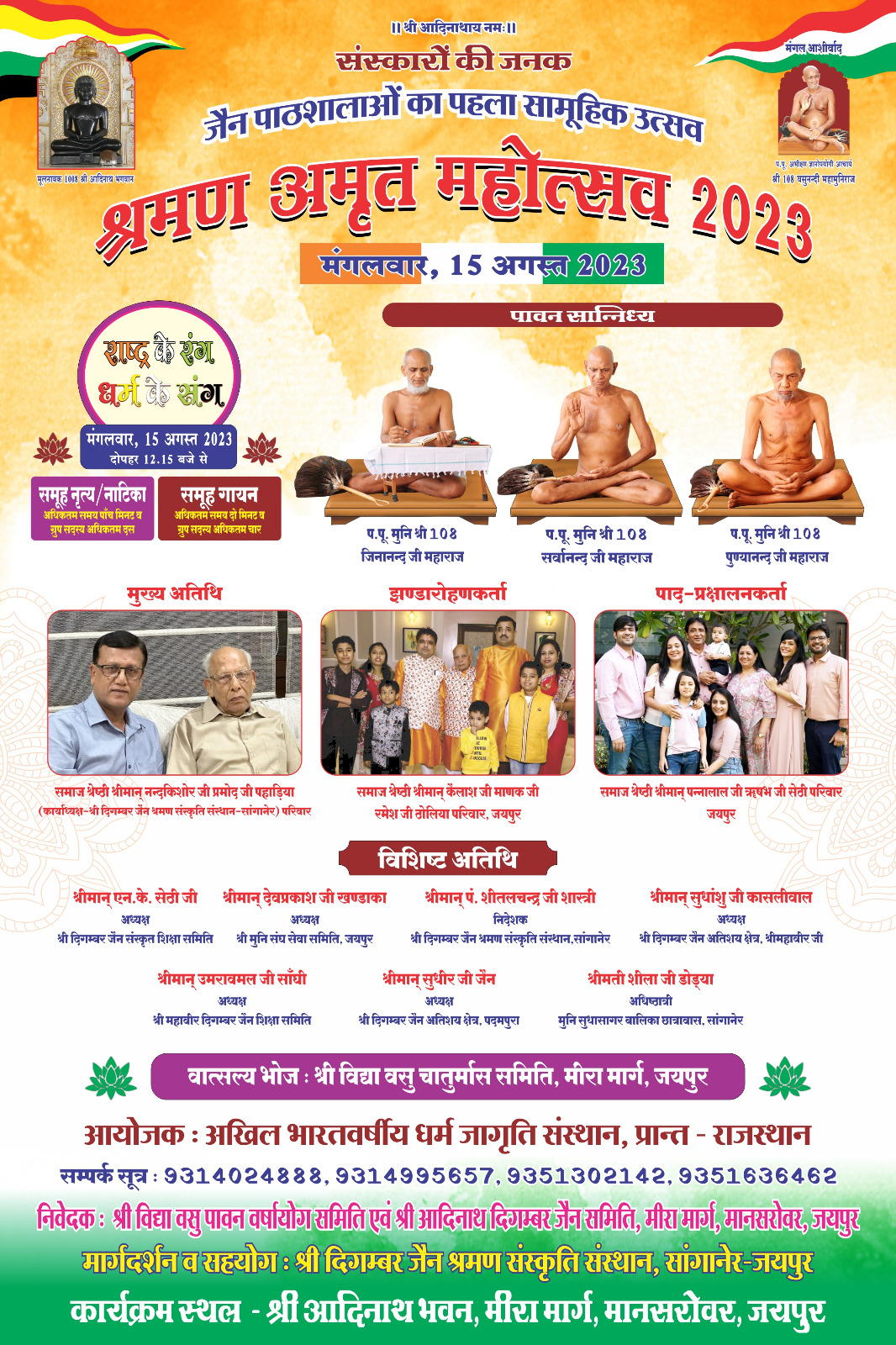 आचार्यश्री ने कहा कि परिणाम विशुद्ध करो शांतिपूर्वक जियो, अपनेभावों को संभालो भाव संभल गए तो सब संभल जाएंगे। भावों के विकार से ही नवीन भाव प्राप्त होते हैं। भावों पर ही भविष्य बनता है।