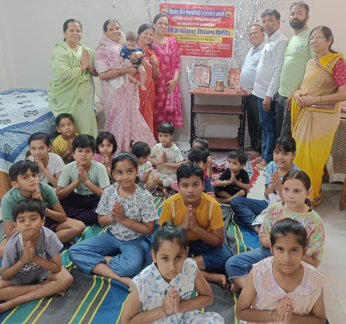 भगतसिंह कालोनी शांतिसागर पाठशाला, चंद्र प्रभु पाठशाला बंपुई वालों की धर्मशाला एवं बिचला मंदिर जैन पाठशाला के बालक बालिकाओं को महासमिति महिला ईकाई के पदाधिकारियों एवं पाठशाला की शिक्षिकाओं द्वारा धार्मिक शिक्षण दिया गया जिसमें 6 स्थानों में बालक बालिकाओं को दर्शन, पूजन, आदि क्रियाओं के साथ अध्ययन करवाया जा रहा है। शिविर शुभारंभ से पूर्व शिविर संचालिका संगीता संधी, प्रियंका पराणा, अंजना ठोलियां, शशी सोगानी, आशा गिन्दोडी़, मंजुला काला, सीमा जैन, मुन्नी देवी भाणजा, विजया टोंग्या, सपना सोगानी, ने बच्चों को नो बार णमोकार महामंत्र के साथ मंगलाचरण की पद्धति सिखाई। शिविर प्रभारी विमल पाटनी जौंला एवं राकेश संधी ने बताया कि दस दिवसीय शिविर में नित्य बाल संस्कार की कक्षाएं नियमित चल रही है सभी मंदिरों एवं शिविर स्थलों पर शिविरार्थियों में उत्साह नजर आ रहा है। इस अवसर पर शिक्षिका सलोनी जैन मंजू चंवरिया सीमा गिन्दोडी़ कंचन जैन सपना संधी खुश्बू संधी संतरा जैन ईटावा हेमा जैन रवि जैन मीनाक्षी भाणजा अनिता छाबड़ा नेहा सोगानी चारुल जैन देविक जैन शिखरचंद काला पवन टोंग्या मेना काला पूर्णिमा गंगवाल त्रिलोक सिरस प्रियंका सिरस सीमा सेदरिया सहित कई जैन शिक्षक शिक्षिकाओं ने अपने अपने शिविर स्थल पर बच्चों को बालबोध जैन धर्म का पाठ पढ़ाया।