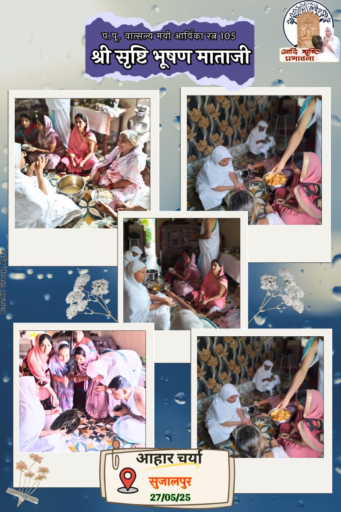 फास्ट फूड के विषय में माताजी ने कहा कि आज बच्चे सात्विक खाना नहीं खाकर चाऊमीन मोमोज जैसी चीज खा रहे हैं जो गलत है। अंग्रेज चले गए लेकिन हम अंग्रेजों को अपना रहे हैं। ध्यान रखना हमें तीर्थंकरों की तरह क्षत्रिय बना है हमें दुश्मन को नहीं दुश्मनी को मिटाना है हमेशा यही भावना भान मैत्री भाव जगत में मेरा हमेशा मैत्री भाव बना रहना चाहिए आज हमने फूहड़ता की और कदम बढ़ा दिए। माताजी की आहारचर्या शुजालपुर में संपन्न हुई