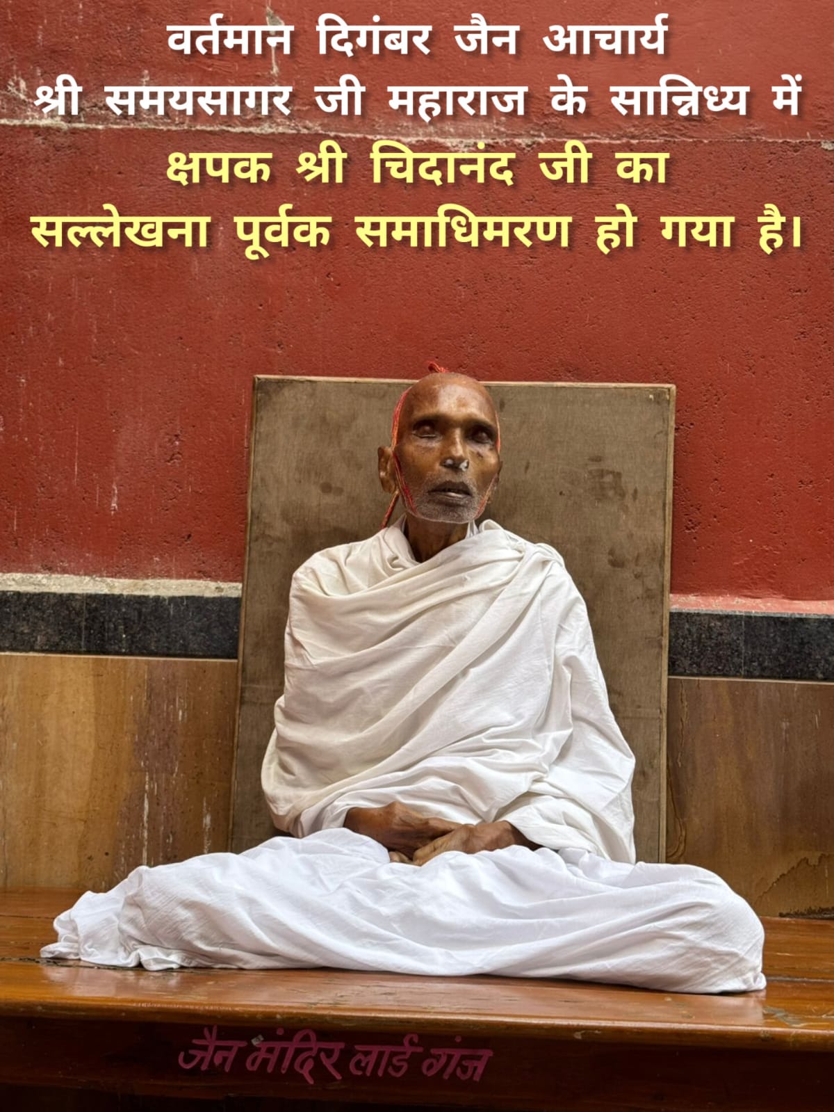 श्री चिदानन्द जी चार दिन पूर्व अजमेर से जबलपुर संल्लेखना के भाव से आए थे। उन्होंने आचार्यश्री समयसागर जी महाराज से संल्लेखना धारण की। अन्न जल एवं गृह त्याग किया। उनके पुत्र अजय जैन दनगसिया और श्री विजय जैन दनगसिया अजमेर एवं पूरा परिवार संल्लेखना के समय मौजूद थे।*