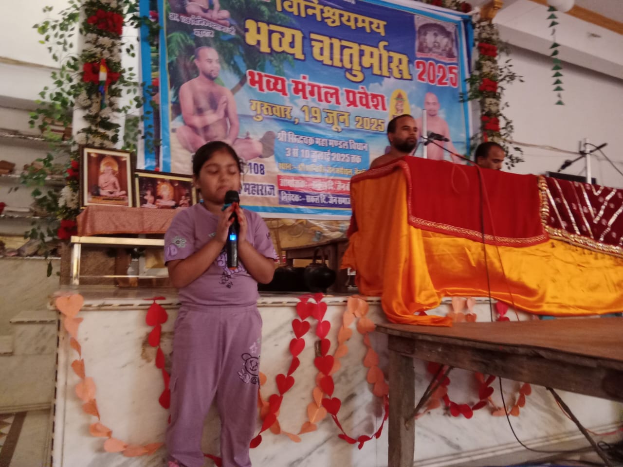 नैनवा जिला बूंदी 24 जून मंगलवार अग्रवाल दिगंबर जैन बड़े मंदिर में धर्म सभा से पूर्व मंगलाचरण की प्रस्तुति बहुत ही छोटी बालिका कक्षा 2 में पढ़ने वाली अयाशी जैन दी।