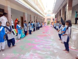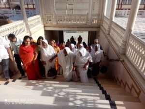 परम पूज्य गणिनी आर्यिका 105 विशुद्धमती माताजी का 14 वर्षों के बाद श्री महावीर जी तीर्थ पर आगमन हुआ। इस अभूतपूर्व आगवानी की बेला में विद्यालय की बालिकाओ ने मार्ग को रंगोली से सजाया व आगवानी की साथ ही आर्यिका 105 सृष्टिभूषण माताजी ने आर्यिका संघ की अभूतपूर्व आगवानी की।