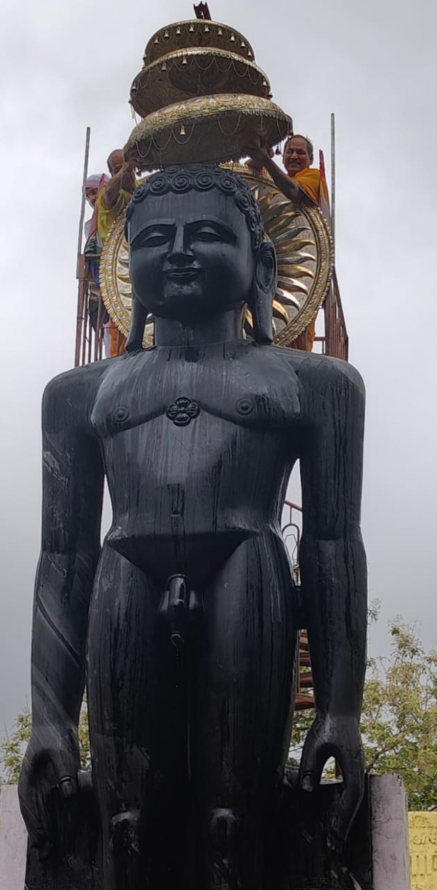 तत्पश्चात निर्मल ध्यान केन्द्र में स्थित 22 फुट उतंग भगवान नेमीनाथ जी की प्रतिमा पर महामास्तिकाभिषेक किये गये व शांतिधारा की गई ।
