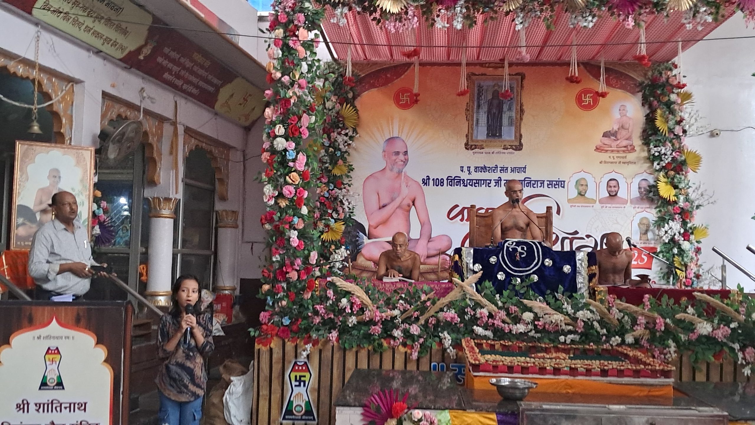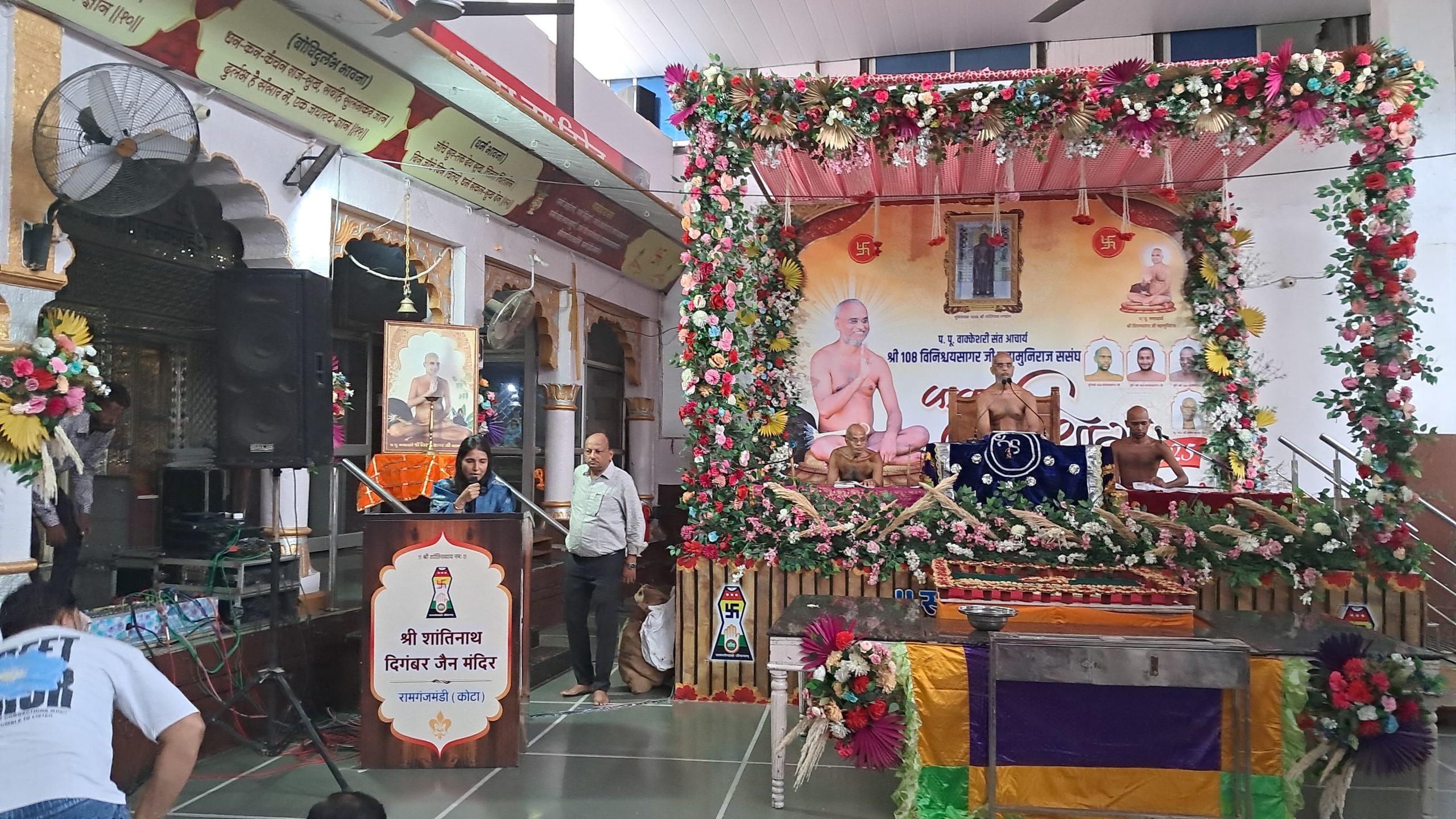 रामगंजमंडी परम पूज्य आचार्य श्री 108 विनिश्चयसागर महाराज के मंगल उद्बोधन शांतिनाथ दिगंबर जैन मंदिर में हुए सर्वप्रथम मंगलाचरण आरवीं जैन एवं प्राची बाकलीवाल द्वारा किया गया।