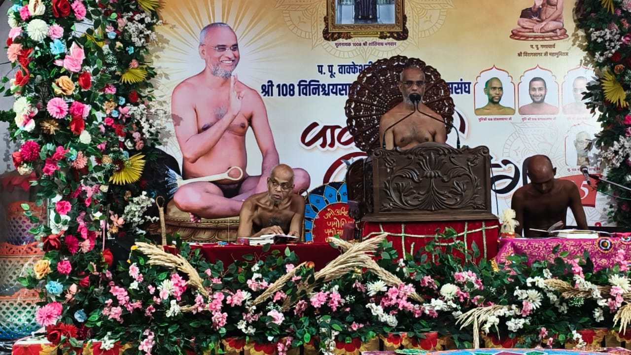 शुक्रवार की प्रातः बेला में धर्म सभा में सर्वप्रथम मंगलाचरण श्रीमती शोभना सांवला ने किया मंगल प्रवचन देते हुएपरम पूज्य वाक्केसरी आचार्य श्री 108 विनिश्चय सागर महाराज ने कहा की संसारी जीव के पास दो ही चीज हैं सत्य या असत्य जैसा व्यक्ति का मन मस्तिष्क होगा वैसा ही कार्य होगा बुराई का होगा तो बुराई का काम होगा अच्छाई में आत्मसात होगा तो व्यक्ति अच्छा करेगा यही कारण है कि कहा जाता है कि अच्छा विचार करो। हमें अच्छा होने की अभिव्यक्ति नहीं हो पाती हमें परिवर्तन करना होगा धर्म ध्यान करने से ही आत्म कल्याण के मार्ग खुलते हैं।