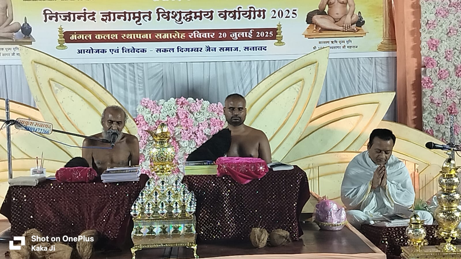 सनावद:- प.पू.राष्ट्रगौरव आचार्यरत्न 108 श्री वर्धमान सागर जी महाराज सहित 18 त्यागियों की जन्म नगरी सनावद में वर्षायोग चातुर्मास हेतु पधारे परम पूज्य गणाचार्य श्री 108 विराग सागर जी महाराज व प.पू.चर्या शिरोमणी आचार्य श्री 108 विशुद्ध सागर जी महाराज के परम प्रभावक शिष्य तप शिरोमणी, उपवास साधक मुनि श्री 108 विश्वसूर्य सागर जी महाराज व वात्सल्य ऋषि पूज्य मुनिश्री 108 साध्य सागर जी महाराज का निजानंद ज्ञानामृत पावन वर्षायोग मंगल-कलश स्थापना समारोह साआनंद संपन्न हुआ।