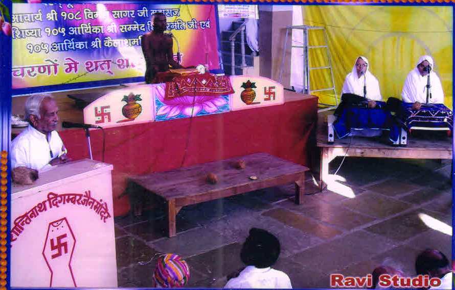 21 dec 2007 को आहारचर्या उपरांत शाहजी चौराहा पर मुनि श्री ने धर्म सभा को संबोधित किया था उस समय माताजी की ओर से एक भावभीना भजन मुनि चरणों में समर्पित किया।इस अवसर पर पूज्यश्री ने अपने उद्बोधन में अहिंसा शाकाहार का पालन करने की बात सभी को कई। इस धर्म सभा का संचालन श्रीमान केवलचंद रावका ने किया। इस बेला में अनेक विशिष्ट व्यक्तियों ने भी अपनी सहभागिता प्रदान की। मुनि श्री ने धर्मसभा में सभी को मांसाहार का त्याग करवाया।