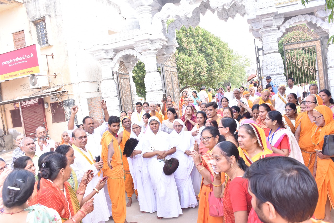 परम पूज्य आचार्य श्री विद्यासागर जी महाराज के परम प्रभावक शिष्य परम पूज्य मुनि श्री पावन सागर जी महाराज जंगल वाले बाबा ,मुनि श्री सुभद्र सागर जी महाराज ससंघ के आशीर्वाद से 10 अगस्त 2025 रात्रि 8:00 बजे 48 दिवसीय भक्तामर पाठ का शुभारंभ दिगंबर जैन मंदिर गायत्री नगर महारानी फार्म में मंदिर प्रबंध समिति के पदाधिकारियों द्वारा दीप प्रज्ज्वलन कर शुभारंभ हुआ ।