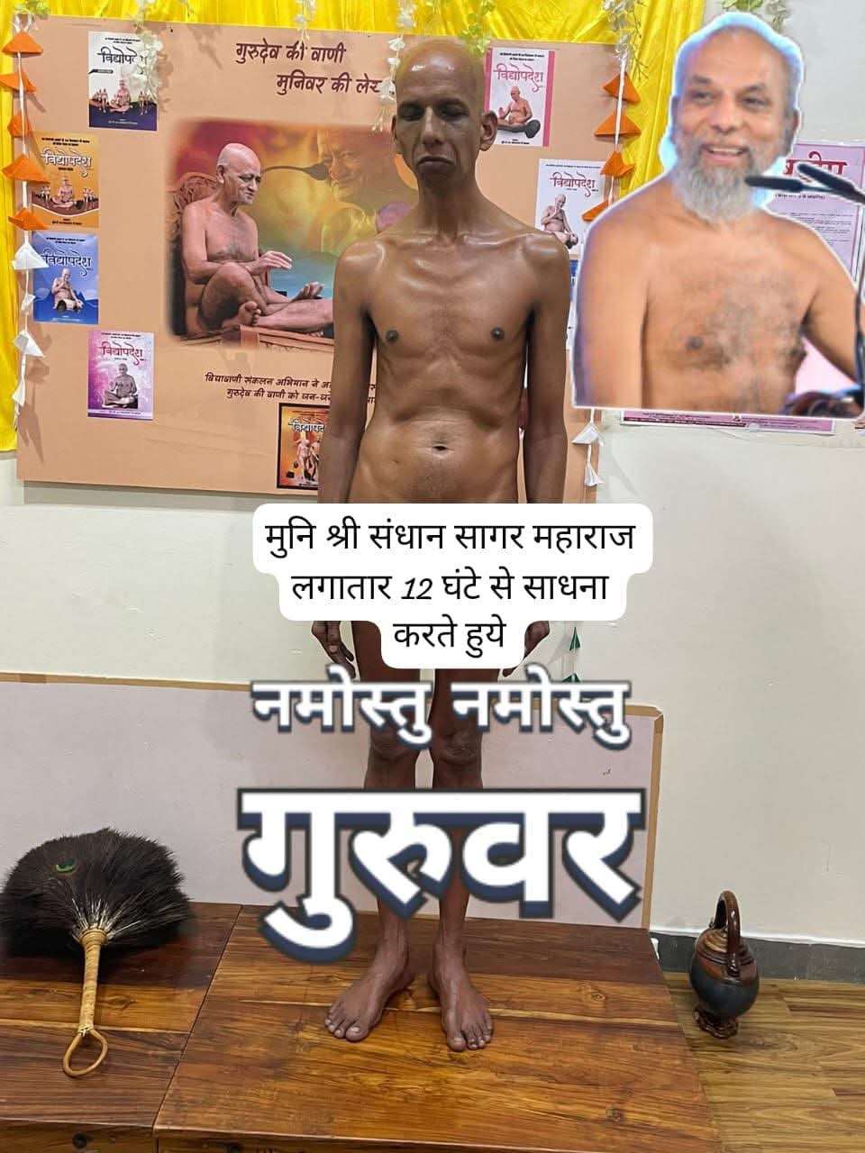 भोपाल (अवधपुरी) मुनि श्री प्रमाण सागर महाराज का प्रत्येक सोमवार को मौन के साथ उपवास रहता है इस दिवस वह धर्म ध्यान में लीन रहते हें तथा पूरा समय अपने लिये ही रिजर्व रखते है एवं आम श्रद्धालुओं से नहीं मिलते उन्ही के संघस्थ मुनि श्री संधान सागर महाराज प्रति सोमवार को कुछ न कुछ ऐसा तप करते है कि देखने वाले दांतों तले उंगली दबा लेते है, सोमवार को जब मुनि श्री आहार चर्या को निकले तो चारों ओर नमोस्तु नमोस्तु के स्वर गूंजे लेकिन यह क्या मुनि श्री ने सभी भक्त श्रद्धालुओं की ओर देखा सभी विधी लिये खड़े थे किंतु आज उन्होंने जो विधी ली थी वह किसी के पास नहीं मिली बार बार श्रद्धालुओं ने विधी बदलने की कोशिश भी की लेकिन मुनि श्री तो शायद अलाप विधी का सोचकर ही निकले थे और उन्होंने तीन बार सभी की ओर देखा विधी नहीं मिलने पर वह मुस्कुराते हुये अपने कक्ष की ओर चल दिये तथा वंहा जाकर खड़े होकर ध्यानस्थ हो गये एवं लगातार यूंही 12 घंटे का संकल्प के साथ खड़े खड़े तप कर रहे है..।