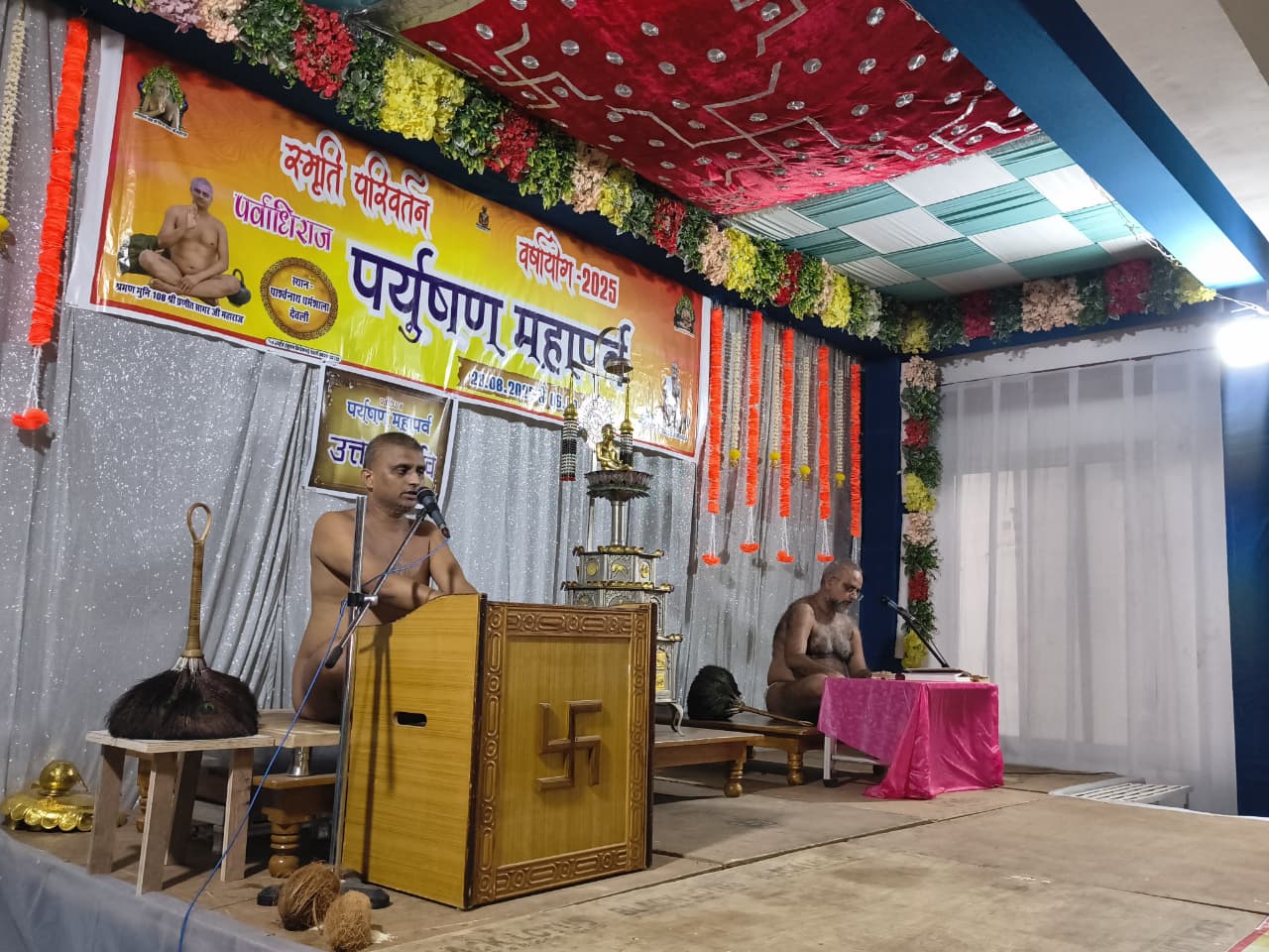 मीडिया प्रभारी विकास जैन टोरडी ने बताया की प्रथम सत्र में भगवान की प्रथम शांतिधारा करने का सौभाग्य मनीष जी, शिवांश जी जैन प्यावड़ी वाले परिवार एवं द्वितीय शांतिधारा का सौभाग्य पारस जी पलासिया वाले परिवार को प्राप्त हुआ! इसी के साथ उत्तम मार्दव धर्म के द्वितीय दिवस पर मुनि श्री का पादप्रक्षालन, चित्रणावरण, दीप प्रज्वलन, एवं शास्त्र भेंट का सौभाग्य भी प्रथम शांतिधारा परिवार को प्राप्त हुआ इसी के साथ बताया की दोपहर के सत्र में पँचमेरु विधान का आयोजन वाणीभूषण पंडित प्रवर श्री अंकित जी शाष्त्री दमोह एवम संगीतकार अवनीश जैन गुना के निर्देशन एवं संगीतकार अवनीश जैन गुना के निर्देशन में हुआ! द्वितीय दिवस पर विधान पुण्यार्जन एवं सौधर्म इंद्र बनने का सौभाग्य जयकुमार जी-इंद्रा देवी, अभिषेक जी रोपा वाले परिवार को प्राप्त हुआ!