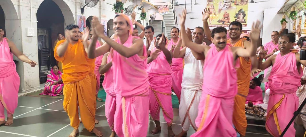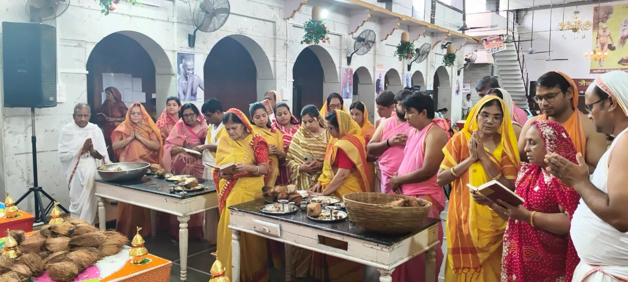 दशलक्षण पर्व के पंचम दिन उत्तम सत्य धर्म की आराधना की गई तत्वार्थ सूत्र के मुख्य तीन मंडल पर अर्ध समर्पित किए गए। एवम नित्य नियम पूजन की गई।