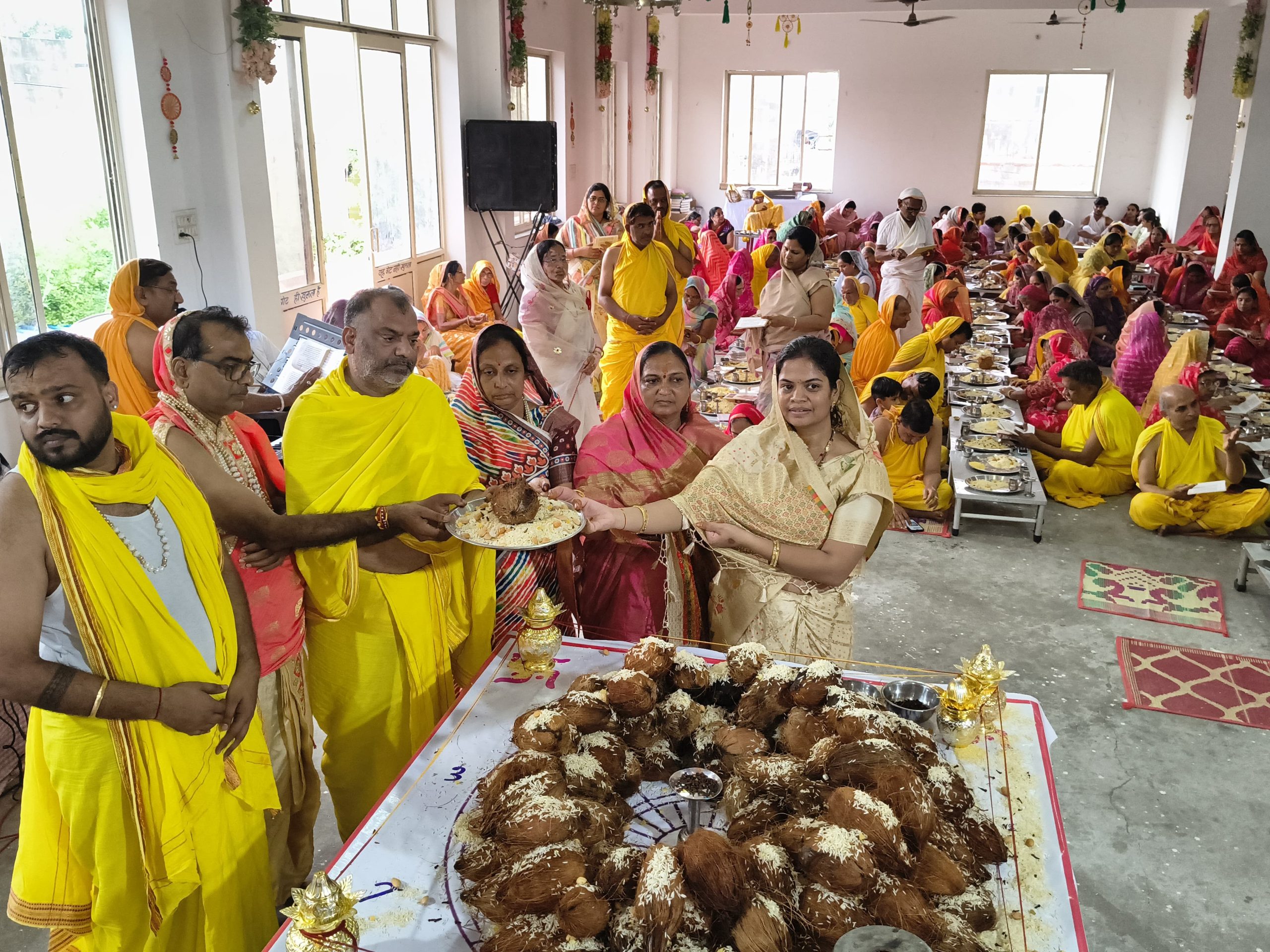मीडिया प्रभारी विकास जैन टोरडी ने बताया की प्रथम सत्र में भगवान की प्रथम शांतिधारा का सौभाग्य माणकचन्द,दीपक कुमार बाजटा वाले परिवार एवं द्वितीय शांतिधारा एवं मुनि श्री का पादप्रक्षालन, चित्रणावरण, द्विपप्रज्वलन, एवं शास्त्र भेंट का सौभाग्य सौभाग्य सुशील जी जैन पटवारी परिवार को प्राप्त हुआ! इसी के साथ बताया की दोपहर के सत्र में “64 ऋद्धिमन्त्र विधान” का आयोजन वाणीभूषण पंडित प्रवर श्री अंकित जी शास्त्री दमोह(MP) वाले सांखना राजस्थान एवम संगीतकार अवनीश जैन गुना के निर्देशन में हुआ! विधान पुण्यार्जन एवं सौधर्म इंद्र बनने का सौभाग्य नेमीचंद जी, धर्मचन्द जी साँडला परिवार को प्राप्त हुआ!