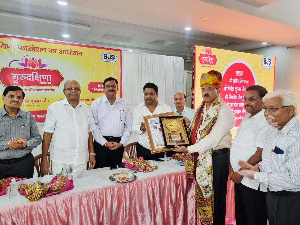 समाज में शिक्षा और शिक्षक के महत्व को रेखांकित करते हुए यह आयोजन जैन समाज की नई पहल साबित हुआ।आयोजन में इन शिक्षकों को डॉ.आरके.जैन प्रो. डॉ. सीएम जैन,डॉ.नीरू जैन, जीएल जैन,निखिल जैन,डॉ.अतुल जैन, सुप्रिया जैन,पूजा जैन,को शिक्षा सारथी सम्मान प्रदान कर उनके योगदान को समाज के सामने प्रस्तुत किया गया।कार्यक्रम के दौरान उपस्थित सभी अतिथियों ने कहा कि शिक्षक ही समाज की रीढ़ होते हैं और उनके मार्गदर्शन से ही नई पीढ़ी संस्कार,ज्ञान और जीवन मूल्य प्राप्त करती है।बीजेएस का यह प्रयास समाज में शिक्षा के क्षेत्र में उत्कृष्ट कार्य कर रहे शिक्षकों का उत्साहवर्धन करने वाला है।आगरा में पहली बार हुए इस महोत्सव ने समाज में शिक्षा के महत्व और गुरु-शिष्य परंपरा की गौरवमयी परंपरा को और अधिक सुदृढ़ करने का संदेश दिया।इस मौके पर मनोज जैन बाकलीवाल,रोहित जैन अहिंसा,सुरेश जैन पारस जैन कंसल,मनीष लाला राज्य उपाध्यक्ष, कुमार मंगल जैन,अंकेश जैन,शैलेंद्र जैन,अंकुश जैन,निर्मल जैन मौठया, जगदीश प्रसाद जैन,आशीष जैन, विमलेश मारसंस,पंकज जैन मुकेश जैन,समस्त पदाधिकारी उपस्थित रहे