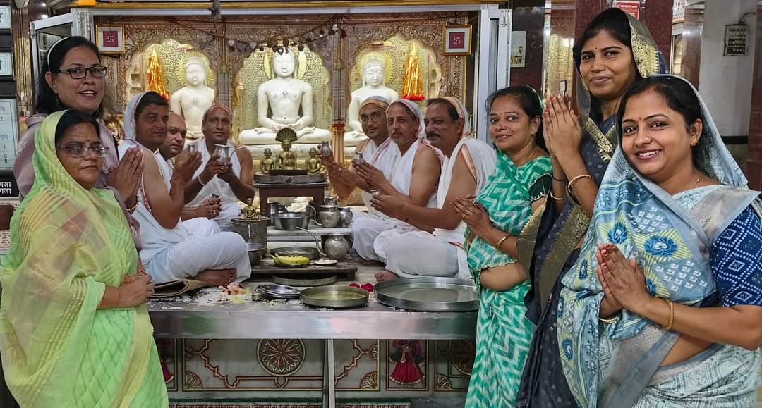 निवाई – सकल दिगम्बर जैन समाज के तत्वावधान में आचार्य वर्धमान सागर महाराज संधस्थ जैन मुनि चिन्मय सागर महाराज एवं भारत गौरव गणिनी आर्यिका ज्ञान मति माताजी के स्वास्थ्य लाभ को लेकर जैन सोशल ग्रुप प्रज्ञा एवं दिगम्बर जैन महासमिति के श्रद्धालुओं ने भगवान मुनिसुब्रतनाथ जी एवं भगवान पार्श्वनाथ जी की विधिवत मंत्रोच्चार द्वारा विशेष शांतिधारा का आयोजन किया गया जिसमें अनेक लोगों ने भाग लिया। जैन धर्म प्रचारक विमल जौंला एवं सुनील भाणजा ने बताया कि श्री दिगम्बर जैन बड़ा मंदिर में प्रातः आचार्य श्री वर्धमान सागर जी महाराज के संधस्थ जैन मुनि पूज्य गुरुदेव चिन्मय सागर जी महाराज एवं भारत गौरव गणिनी आर्यिका ज्ञानमती माताजी के स्वास्थ्य लाभ को लेकर समाजसेवी बंटी झांझरी के मंत्रोच्चार द्वारा शांतिधारा एवं अभिषेक किया इसके बाद श्रद्धालुओं ने नित्य पूजन के साथ श्री फल अर्ध्य चढ़ाकर पूजा अर्चना की।