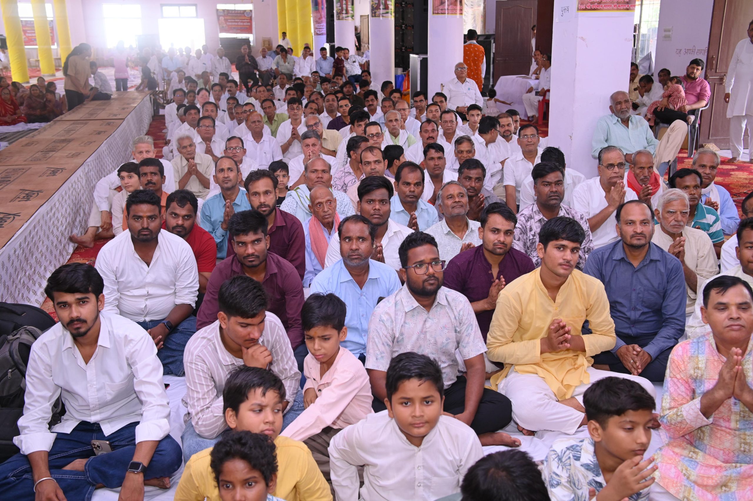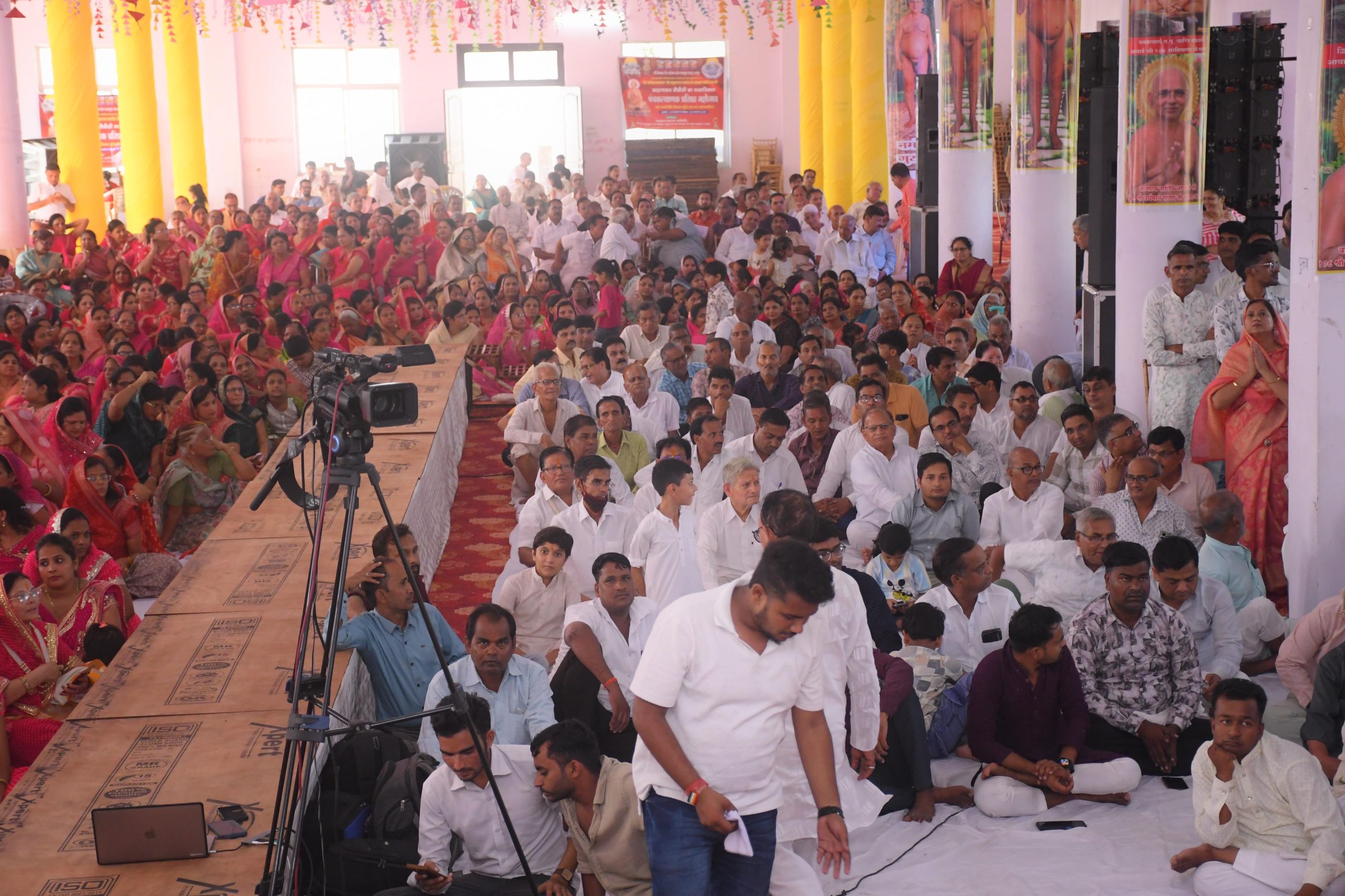 वर्तमान में भगवान साक्षात नहीं है इसलिए पत्थर,धातु रत्नों की प्रतिमाओं में भगवान के गुणों का आरोपण, सूरीमंत्र संस्कार से किए जाते हैं। आचार्य श्री के प्रवचन के पूर्व आर्यिका श्री महायश मती माताजी ने उपदेश में बताया कि गुरु के वचनों से जीवन अच्छा होता है ,क्योंकि गुरु आचार्य साधु भगवान की प्रतिकृति होते हैं। सिद्ध क्षेत्र,तीर्थ यात्रा, मंदिर साधुओं के दर्शन से ज्यादा संलेखना धारी साधु के दर्शन करना उनकी सेवा वेयावृति करना पुण्यशाली होता है। आपको भी यह भावना करना चाहिए कि मेरा भी समाधिमरण हो। गजकुमार मुनि ने भगवान के समवशरण में श्री वरदत्त गणघर के उपदेश में 63 शलाका पुरूषों का वर्णन सुन कर भेद विज्ञान से आत्मा का चिंतन कर वैराग्य धारण कर अग्नि उपसर्ग समता से सहन कर तपस्या से सभी 8 कर्मों को नष्ट कर मोक्ष प्राप्त किया चन्द्र प्रभु मंदिर के ओमप्रकाश, शैलेन्द्र एवं राजेश अरिहंत ने बताया कि सोधर्म इंद्र का सौभाग्य महेंद्र कुमार जी जैन लदाना हाल निवासी अमेरिका,धनपति कुबेरश्री प्रेम चंद जी सुलोचना जी सोगानी महायज्ञनायक रतनलाल जी सोगानी परिवार, यज्ञनायक इंदर जी सिद्धार्थ जी सोगानी सहित अनेक इंद्र बने हैं