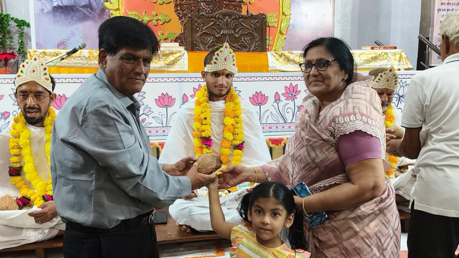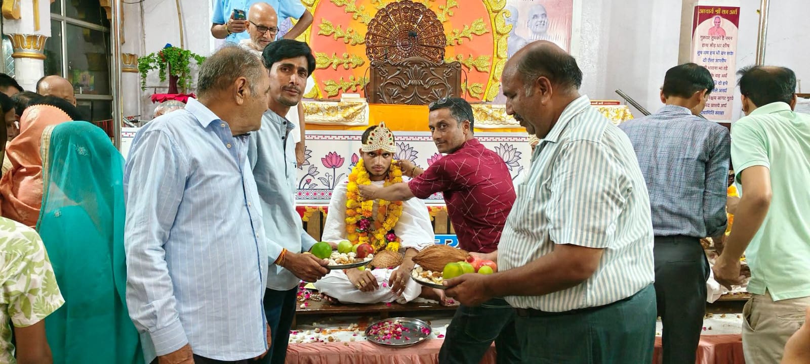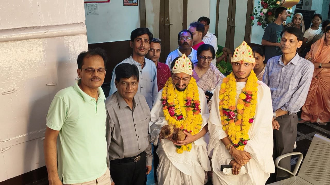 परम पूज्य आचार्य 108 विनिश्चय सागर महाराज का मंगल आशीर्वाद लेने चारों दीक्षार्थी भैया ब्रह्मचारी श्री प्रकाश भैया, श्री विकास भैया, श्री उमंग भैया एवम श्री पंकज भैया सोमवार की संध्या बेला में रामगंज मंडी पधारे उन्होंने सर्वप्रथम मूल नायक श्री शांतिनाथ भगवान के दर्शन किए दर्शन उपरांत प्रवचन सभागार में चारों दीक्षार्थी भैयाओ की गोद भराई की गई सर्वप्रथम आचार्य श्री 108 विनिश्चय सागर महाराज संघस्थ ब्रह्मचारी प्रताप भैया, ब्रह्मचारी राहुल भैया, ब्रह्मचारी प्रीती दीदी, ब्रह्मचारी निक्की दीदी, ब्रह्मचारी सीमा दीदी द्वारा चारों दीक्षार्थी भैयाओ की गोद भराई की एवं उनके संयम पथ की अनुमोदना की इसके उपरांत सकल दिगंबर जैन समाज रामगंजमंडी की ओर से संरक्षक अजीत सेठी अध्यक्ष दिलीप विनायका उपाध्यक्ष चेतन बागड़िया उपाध्यक्ष कमल लुहाड़िया महामंत्री राजकुमार गंगवाल मंत्री राजीव बाकलीवाल ने दीक्षार्थी भैयाओ की गोद भराई की एवम उनका अभिनंदन किया। समारोह का संचालन महामंत्री राजकुमार गंगवाल ने किया गोद भराई करने के लिए सभी समाज बंधुओ में भारी उत्साह देखा गया।