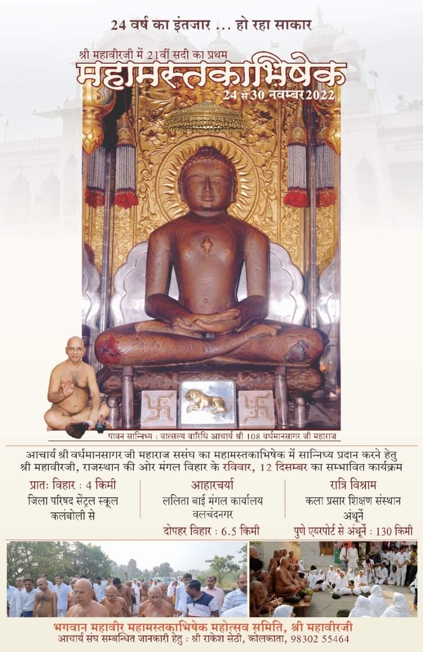 टोंक वात्सल्य वारिधि पंचम पट्टाधीश आचार्य श्री वर्धमान सागर जी महाराज 34 साधुओं सहित अतिशय क्षेत्र टोंक में 34 साधुओं सहित विराजित है।वर्षायोग समिति एवं जैन समाज द्वारा आचार्य श्री शांतिसागर जी महाराज का 70 वा समाधि वर्ष,आचार्य श्री वर्धमान सागर जी का 76 वा वर्ष वर्धन अवतरण दिवस पर,समाधिस्थ मुनि श्री चिन्मय सागर जी की भावांजलि सभा आयोजित हुई। आचार्य श्री शांतिसागर जी के अंतर विलय समाधि वर्ष एवं आचार्य श्री वर्धमान सागर जी के जन्म दिवस पर विभिन्न द्रव्यों से भक्ति सहितपूजन की गई इस अवसर पर आचार्य श्री वर्धमान सागर जी ने प्रथमाचार्य श्री शांति सागर जी के गुणानुवाद भावांजलि में बताया कि 18 सितंबर 1955 को 36 दिन की सल्लेखना के बाद आपकी समाधि हुई। आचार्य श्री ने 9 के अखंड अक्षय अंक का आचार्य श्री शांति सागर जी से संयोग बताया कि दिनांक 18 का योग 9,सितम्बर माह का क्रमांक 9,जन्म दिनांक 27 का योग 9, आपने 36 दिन की संलेखना ली 36 का योग 9 यह अंक अध्यात्म का प्रतीक हैं राजेश पंचोलिया के अनुसार आचार्य श्री ने आगे मुनि श्री चिन्मय सागर जी के बारे में बताया कि दीक्षा गुरु ने नाम सोच कर चिन्मय रखा जो चेतना , चिंतन का प्रतीक हैं।क्षपक साधु की उत्कृष्ट समाधि मरण होने कमसे कम दो भव ओर अधिकतम 8 भव जन्म में मोक्ष जाते है। आप लोग बच्चो के नाम ऊटपटांग रखने के बजाय नन्हें बालक बालिकाओं के नाम तीर्थंकर आचार्य मुनियों महापुरुषों के नाम पर रखना चाहिए। नाम का जीवन पर गहरा प्रभाव होता हैं वर्ष 1989 में दीक्षा के बाद गुरु से वियोग वर्ष 1990 में होने पर भी दीक्षा गुरु के आदेश , संकेत का पालन कर हमारे संघ में पूर्ण समर्पण और गुरु भक्ति से 35 वर्ष साथ रहे। आचार्य श्री की भावांजलि के पूर्व राजेश पंचोलिया इंदौर,विनोद,विपुल पारसोला , प्रतिष्ठाचार्य पंडित हंसमुख, ओमप्रकाश भौरावत,आर्यिका श्री पद्मयश मति श्री महायशमति, श्री देशनामति, श्री निर्मुक्तमति, श्री विलोक मति, श्री वत्सलमति श्री श्री चैत्यमति श्री शुभमति मुनि प्रणीतसागरजी, मुमुक्षुसागर जी, प्रबुद्ध सागरजी, चिंतन सागर जी , ने आचार्य श्री शांति सागर जी आचार्य श्री वर्धमान सागर जी एवं मुनि श्री चिन्मय सागर जी का गुणानुवाद कर उनकी गुरुभक्ति समयबद्धता, अनुशासन, समर्पण के बारे में बताया ।सभी साधुओं ने दीक्षागुरु आचार्य श्रीवर्धमान सागर जी द्वारा विगत वर्षों में कराई उत्कृष्ट समाधि मरण को स्मरण किया। मुनि श्री हितेंद्र सागरजी ने समाज के युवाओ द्वारा प्रतिदिन मुनि श्री चिन्मय सागर जी को अभिषेक दिखाने ओर विधान करने की प्रशंसा की ।समाज प्रवक्ता पवन कंटान विकास जागीरदार अनुसार आचार्य श्री शांति सागर जी एवं पूर्व आचार्यो के चित्र का अनावरण एवं आचार्य श्री के चरण प्रक्षालन कर जिनव