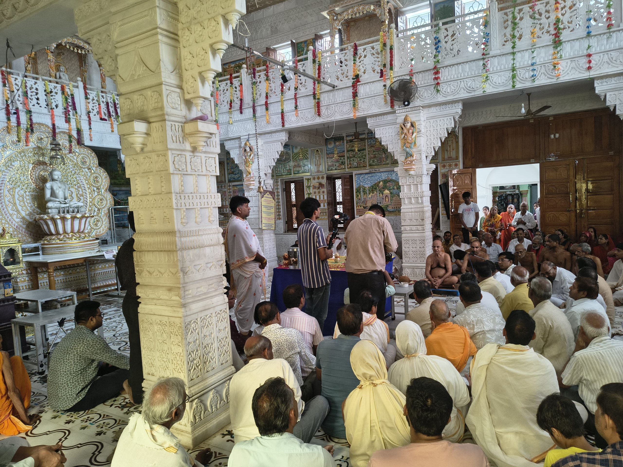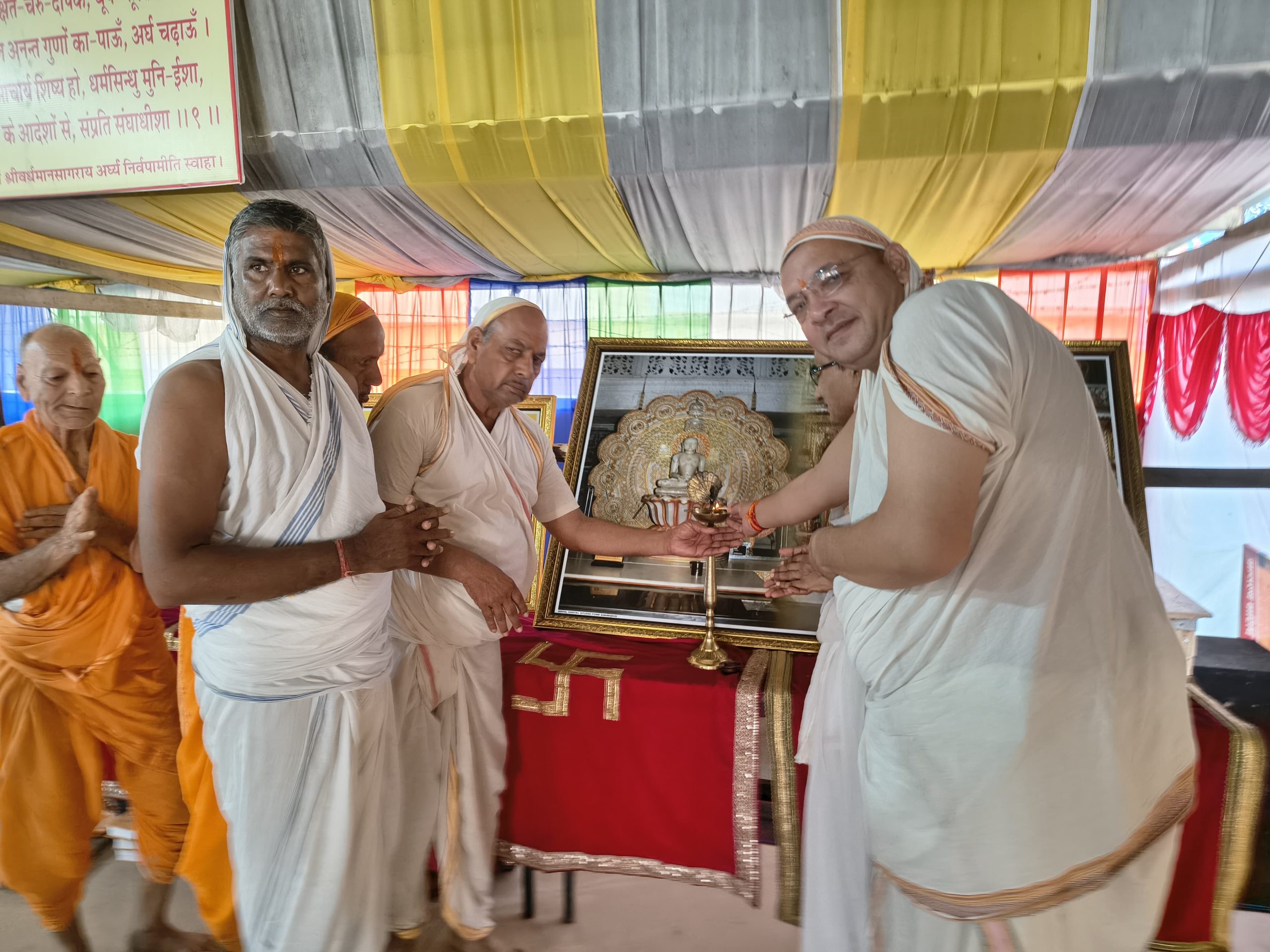 आचार्य संघ की आहारचर्या के बाद दीक्षार्थी अवनीश भाई द्वारा करपात्र में भोजन ग्रहण किया गया।दोपहर में संघ सानिध्य में वृहद प्रतिक्रमण प्रत्ययाखान कर दीक्षार्थी द्वारा गणधर वलय विधान की पूजन की गई।शाम को संपूर्ण समाज द्वारा बिनौरी शोभायात्रा निकाली जाकर दीक्षा की अनुमोदना हेतु श्रीफल,सूखे मेवे आदि से गोद भरी गई। प्रातः काल आचार्य श्री ने उपदेश में बताया कि जीवन परिवर्तनशील है संसारी प्राणी जन्म लेता है शरीर में आयु अनुसार बालपन, किशोर अवस्था ,युवक अवस्था प्रौढ़ और बुढ़ापा क्रम से आता है इसलिए जीवन में आयु परिवर्तन का महत्व समझना जरूरी है कि हर पल हर क्षण हमारी आयु कम हो रही है ।कल भव्य प्राणी दीक्षा ले रहे हैं दीक्षा व्यक्ति तभी लेता है वह संसार के दुखों से थक जाता है ,संसार उसे कष्टमय लगता है संसार के डॉक्टर जवाब दे देते हैं तब व्यक्ति अपनी जिन धर्म पर आस्था के कारण सबसे बड़े गुरु आचार्य परमेष्ठी के पास आता है और निवेदन करता है कि आप मुझे दीक्षा देकर जन्म मरण के रोग से छुटकारा दिला दो में दीक्षा लेना चाहता हूं दीक्षा जीवन में आमूल चूल परिवर्तन है, दीक्षा लेने से ड्रेस ,एड्रेस और लंच बदल जाता है। यह मंगल देशना आचार्य श्री वर्धमान सागर जी महाराज ने प्रथम आचार्य शांति सागर जी प्रवचन माला के अंतर्गत धर्म सभा में प्रकट की राजेश पंचोलिया के अनुसार आचार्य श्री ने आगे बताया कि अतिशय क्षेत्र टोंक नगर में 9 दिन अखंड श्री णमोकार मंत्र का पाठ संपूर्ण समाज ने आचार्य संघ सानिध्य में किया है इससे पाप कर्म से आप बचते हैं ,कर्मों का नाश होता है और पुण्य की प्राप्ति होती है। प्रथमाचार्य श्री शांति सागर जी महाराज ने भी अपने जीवन में 18 करोड़ से अधिक मंत्रों का जाप किया मंत्र जाप से मानसिक और शारीरिक कष्ट दूर होता है।जिस प्रकार पानी को रोक कर बांध बनाया जाता है उसे ऊर्जा प्राप्त होती है उसी प्रकार इस जीवन में संयम दीक्षा रूपी बांध से हमें पुण्य रूपी ऊर्जा की प्राप्ति होती है। बांध बनने से नदी का जलस्तर ऊंचा हो जाता है उसी प्रकार संयम धारण करने से हमारे जीवन में भी उन्नति प्राप्त होती है जिस प्रकार आप पानी को नीचे से ऊपर विद्युत पंप से चढ़ाते हैं उसी प्रकार जीवन में संयम रत्नत्रय धर्म रूपी विद्युत पंप से जीवन उन्नति को प्राप्त होता है। व्रत नियम से जीवन में उन्नति होती है। समाज प्रवक्ता पवन कंटान व विकास जागीरदार अनुसार इस अवसर पर मुनि श्री हितेंद्र सागर जी ने उपदेश में बताया कि 84 लाख मित्रों का राजा णमोकार मंत्र है भावपूर्वक स्मरण सुनने करने से कुत्ता, बैल और अंजन चोर देवगती को प्राप्त हुए। आज की धर्म सभा में प्रसिद्ध भामाशाह आरके मार्बल ग्रुप किशनगढ़ की 6 व्रत प्रतिमा धारी श्रीमती सुशीला अ