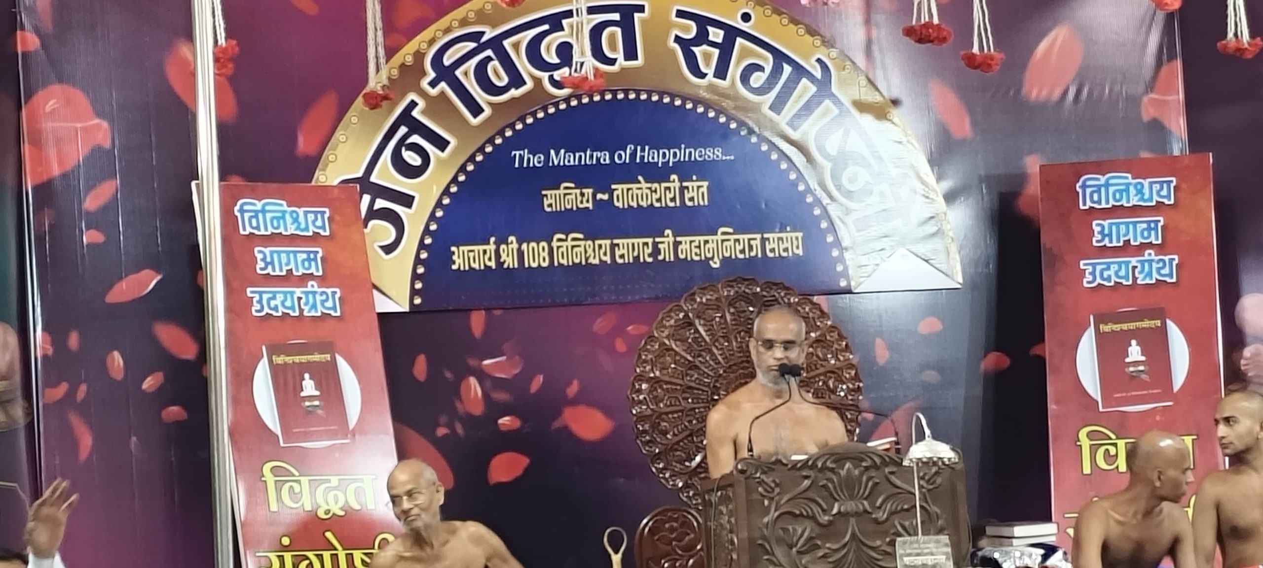 परम पूज्य आचार्य श्री 108 विनिश्चय सागर महाराज सानिध्य में संपूर्ण भारतवर्ष से आए विद्वत जनों की दो दिवसीय राष्ट्रीय संगोष्ठी का शुभारंभ हुआ। 2 दिन में पधारे हुए विद्वत आचार्य श्री 108 विनिश्चय सागर महाराज द्वारा रचित आगमोदय ग्रंथ पर अपने आलेख प्रस्तुत करेंगे एवं इस पर चर्चा करेंगे।