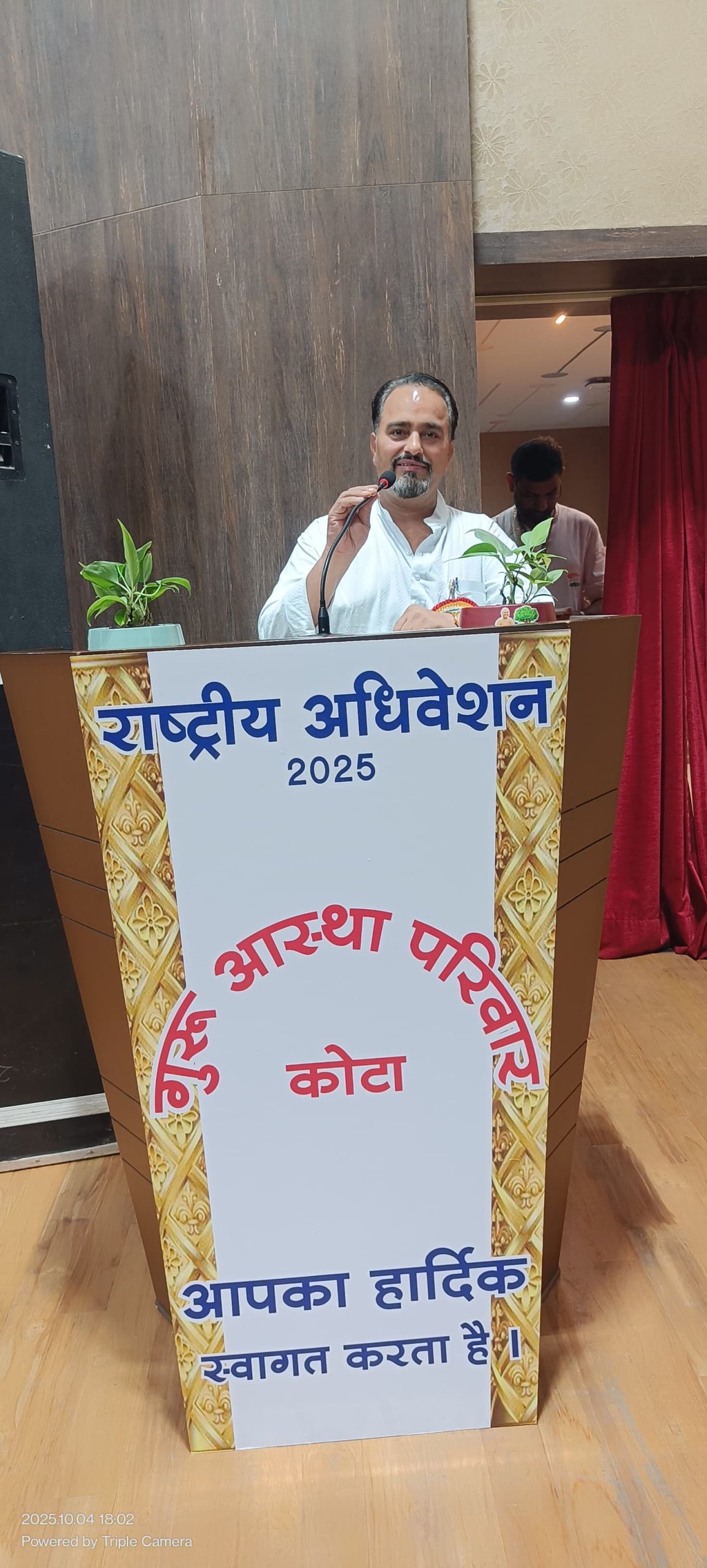 गुरुदेव ने सन 1989 में दीक्षा ली थी कोटा में यह उनका 37 वा चातुर्मास है, 37 साल में उन्होंने बद्रीनाथ से लेकर पांडिचेरी कोलकाता से लेकर गिरनार तक विहार किया। जहां-जहां चातुर्मास हुए और लंबा प्रवास हुआ। उन्होंने कहा जहां लोग लंबे समय तक मेरे साथ रहे। मैं उनका और वह मेरे हो गए। जो लोग यहां मौजूद हैं और किन्हीं कर्म से मौजूद नहीं है लेकिन उनकी गुरु के प्रति समान आस्था है। वे भी मेरे सच्चे भक्त हैं। दूरी स्थान की है, मन की नहीं है। गुरु आस्था परिवार से करीब 2000 लोग सीधे जुड़े हैं वह अधिकांश सभी राष्ट्रीय अधिवेशन में आए हैं यह अधिवेशन गुरु भक्तों का महोत्सव है। इससे गुरु आस्था परिवार के लोग एक दूसरे से मिले और सामंजस्य से पैदा हो। गुरु के संकल्प धर्म और सामंजस्य के कार्य में एकजुट हो यही कार्यक्रम का उद्देश्य है।