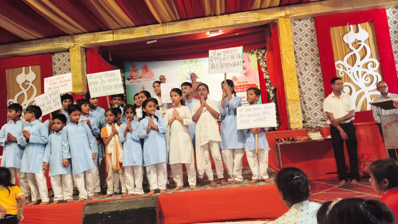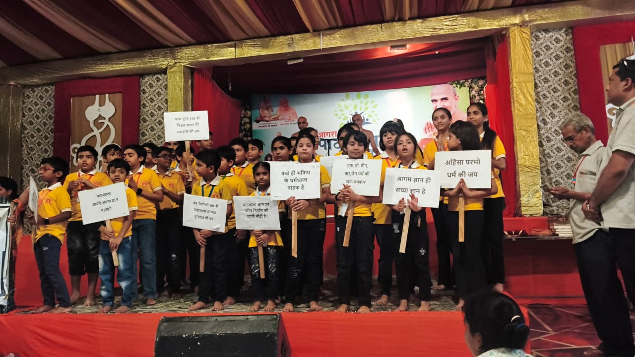 कार्यक्रम का शुभारंभ मुनिश्री सौम्य सागर जी महाराज एवं मुनि श्री निश्चल सागर जी महाराज के मंगल सानिध्य में किया गया। मुनि द्वय ने अपने प्रवचन में बालकों को जैन संस्कृति आचार- विचार एवं नैतिक शिक्षा का महत्व बताया तथा पाठशाला के माध्यम से मिलने वाले आध्यात्मिक संस्कारों को जीवन का आधार बताया