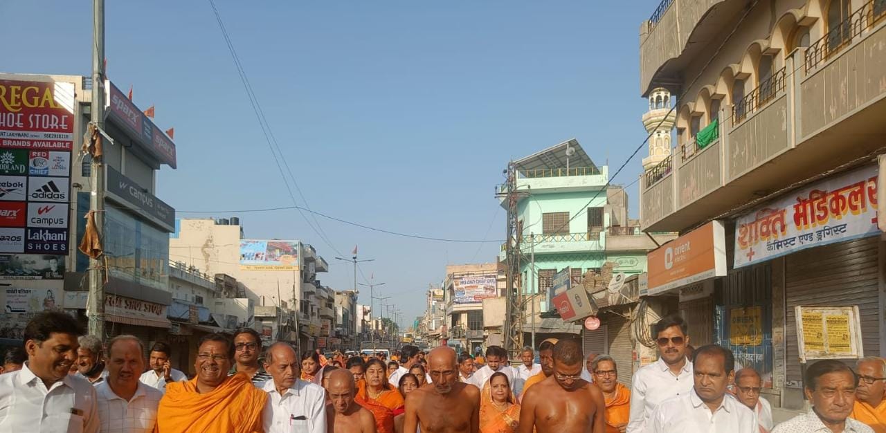 धर्म परायण नगरी मदनगंज किशनगढ़ में आज श्री मुनिसुव्रतनाथ दिगंबर जैन पंचायत द्वारा आयोजित भगवान मुनिसुव्रतनाथ जन्म कल्याणक महोत्सव जोर शोर से मनाया गया कार्यक्रम के तहत श्री जी की भव्य शोभायात्रा निकाली गई,जैन समाज के मीडिया प्रवक्ता राजाबाबू गोधा को जानकारी पर ज्ञात हुआ कि विभिन्न मार्गों से निकली शोभायात्रा के दौरान जैन समाज के लोग , दर्शानार्थ हैतु उमड़ पड़े, कार्यक्रम में वात्सल्य वारिधि आचार्य वर्धमान सागर महाराज की पावन प्रेरणा एवं आशीर्वाद से जैन समाज के 20 वे तीर्थंकर मूलनायक श्री मुनिसुव्रतनाथ भगवान के जन्म कल्याणक महोत्सव पर मुनिश्री वैराग्य सागर महाराज, मुनिश्री स्वयंभू सागर महाराज, मुनिश्री अनुकरण सागर महाराज, गणिनी आर्यिका यशस्विनी माताजी (ससंघ) के सानिध्य में रूपनगढ़ रोड स्थित मुनिसुव्रतनाथ मंदिर से यह शोभायात्रा रवाना हुई। गाजे-बाजे के साथ निकाली गई, शोभायात्रा मुख्य चौराहा, चन्द्रप्रभु मंदिर, ओसवाली मोहल्ला होते हुए मुनिसुव्रतनाथ मंदिर पहुंची। रास्ते में जगह-जगह मुनि संघ ,आर्यिका संघ के जयकारे लगाते हुए श्रावक श्राविकाऐं नाचते गाते हुए चल रहे थे, तथा श्री जी की पालकी पर पुष्प वर्षा एवं आरती की गई,श्रीजी की शोभायात्रा मंदिर जी पहुंचने पर श्रीजी का पंचामृत अभिषेक व शांतिधारा की गई। पंचामृत अभिषेक व शांतिधारा करने का सौभाग्य पारसमल, राजेश कुमार, संजय कुमार, प्रवीण कुमार, आशीष कुमार पांडया परिवार ऊंटडा वाले को प्राप्त हुआ। इससे पूर्व मुनिश्री वैराग्य सागर महाराज, मुनिश्री अनुकरण सागर महाराज एवं गणिनी आर्यिका यशस्विनी माताजी ने भगवान के गुणों का गुणगान किया। कार्यक्रम के दौरान आर. के .मार्बल परिवार से श्रावक शिरोमणी श्रीमती सुशीला पाटनी ने शानदार भजन प्रस्तुत कर माहौल को भक्तिमय कर दिया।