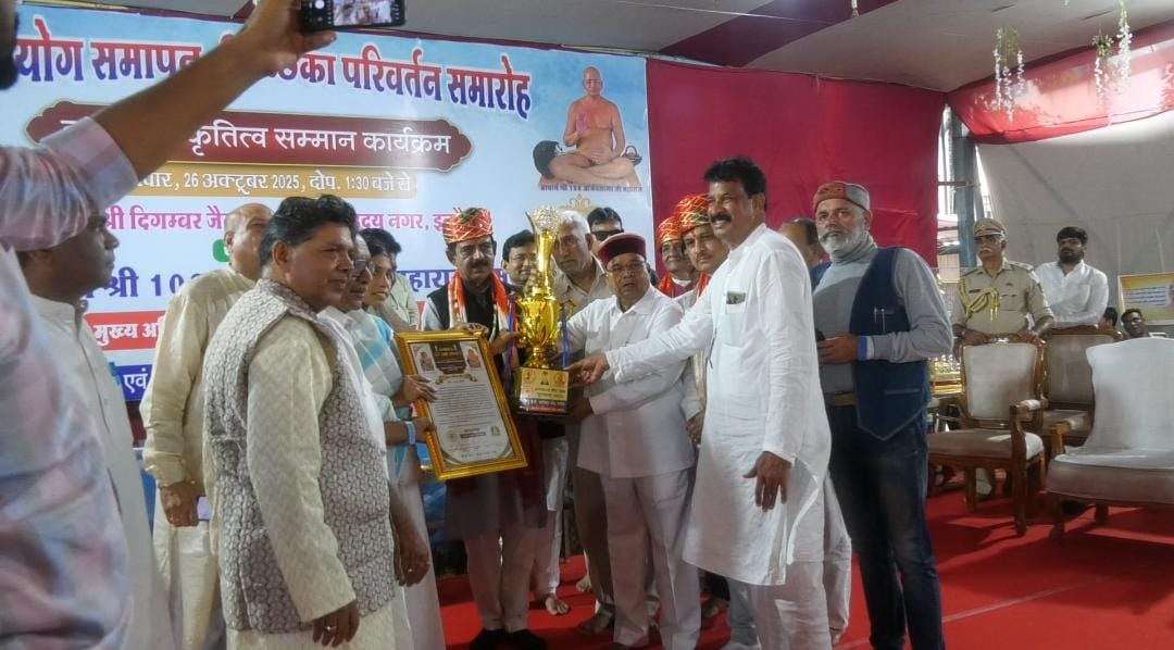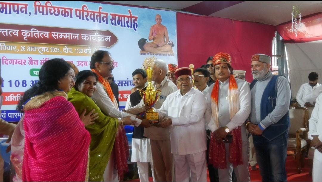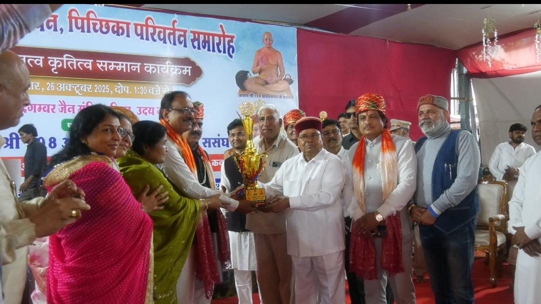 आचार्य भगवन श्री विद्यासागर जी महाराज से दीक्षित *आचार्य गुरुवर श्री 108 आर्जवसागर जी महाराज* ने आज पिच्छिका परिवर्तन के दौरान अपने परम प्रभावक शिष्य मुनि श्री 108 *विलोकसागर जी महाराज* को इंदौर नगरी में *निर्यापक श्रमण* के पद से सुशोभित किया ।