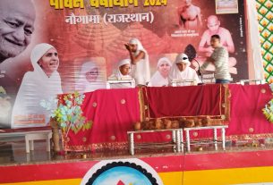 परम पूज्य भारत गौरव गणिनी आर्यिका रत्न 105 विज्ञाश्री माताजी का आज प्रातः 8:00 बजे बांसी ग्राम में मंगल प्रवेश हुआ जहां पर जैन समाज ने भव्य आगवानी कर पाद प्रक्षालन कर आरती करके आशीर्वाद प्राप्त किया जैन समाज के मीडिया प्रवक्ता राजाबाबू गोधा ने अवगत कराया कि तत्पश्चात गुरु मां ने अपने मंगलमय प्रवचन में श्रद्धालुओं को कहा कि संतों का समागम होना कई जन्मों का पुण्य का फल है और प्रभु भजन उसमें मिल जाये तो सोना पे सुहागा हो जायेगा ,