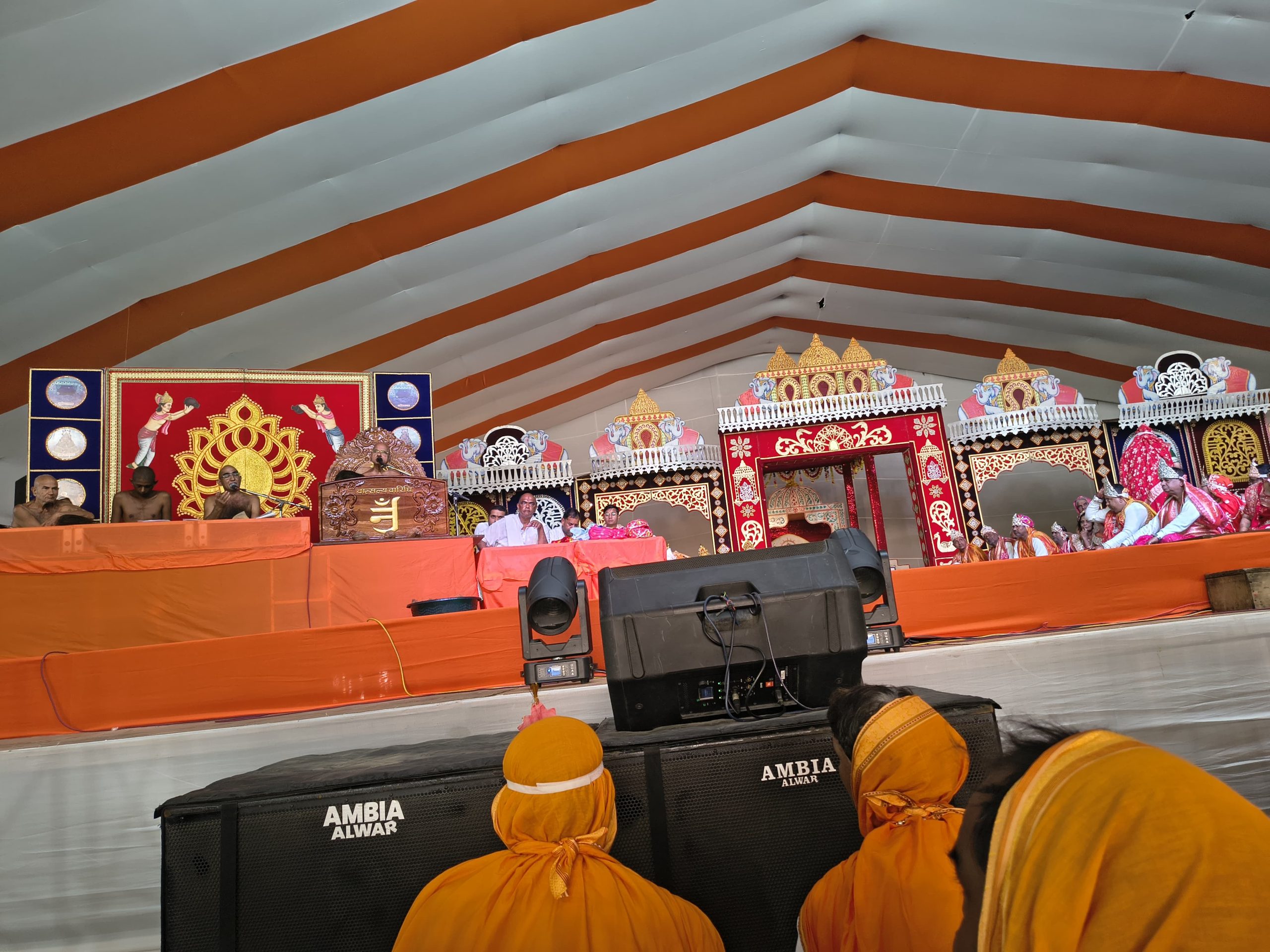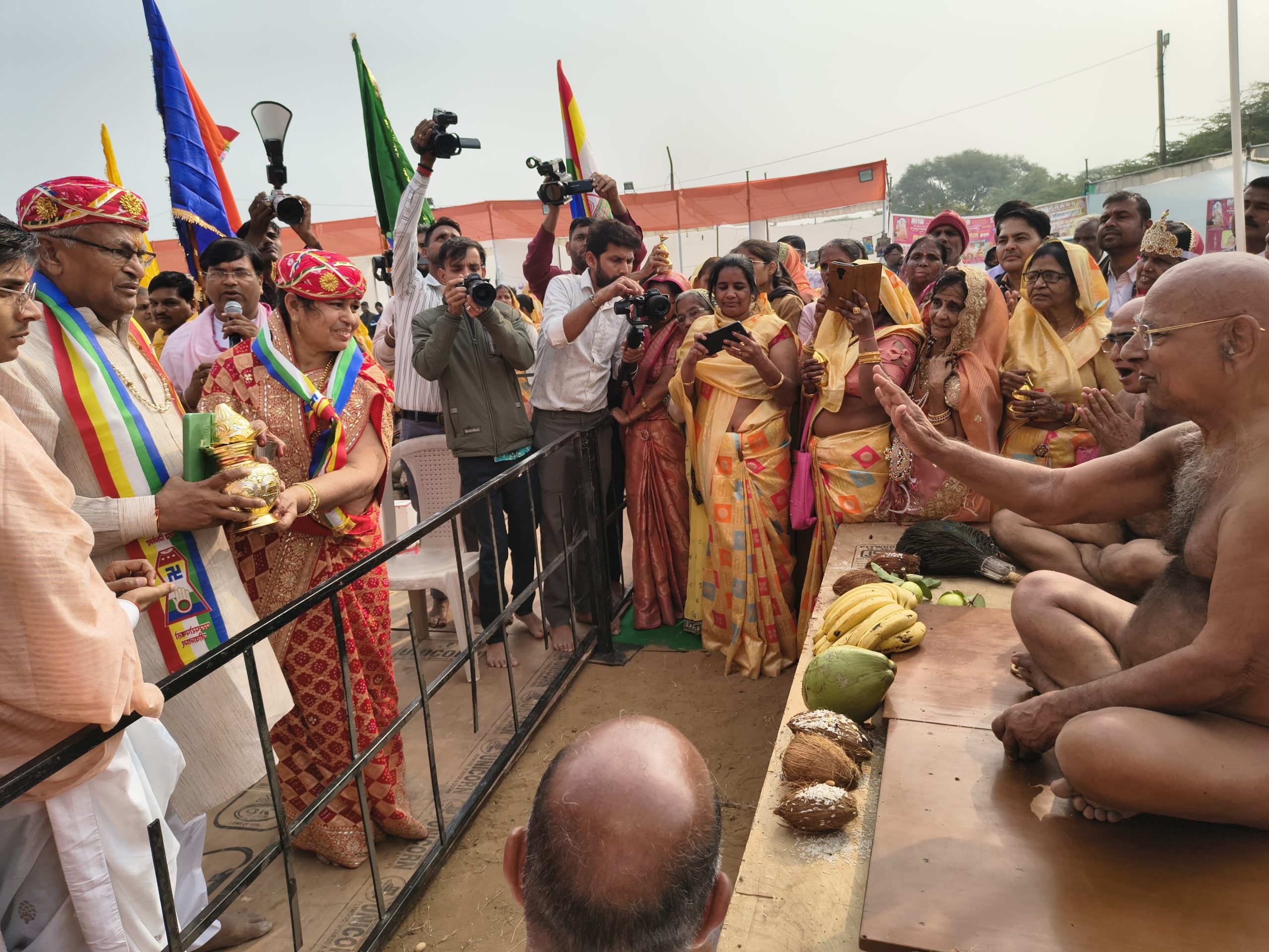 आज प्रातः आचार्य श्री वर्धमान सागर जी ने केश लोचन किए। आज आचार्य श्री का उपवास रहा ।समाज अध्यक्ष बजरंग लाल एवं मनोज जैन सोगानी अनुसार आचार्य श्री प्रवचन के पूर्व ध्वजारोहण श्रेष्ठी श्री सन्मति, कमलेश देवी, सुकुमाल, महिपाल, मोहित चवरिया परिवार ने , मंडप उद्घाटन श्री राजेंद्र दिलीप अंकित अमित निवाई ने ,मुख्य मंगल कलश स्थापना श्री मनोज जैन सोगानी परिवार ने की। आचार्य श्री संघ के मंचासिन होने के बाद मंगलाचरण के द्वारा कर श्रीजी और प्रथमाचार्य श्री शांतिसागर जी सहित परम्परा के सभी आचार्यों के चित्र का अनावरण महावीर, शिखरचंद,सुरेश,अशोक परिवार निवाई तथा दीप प्रवज्जलन श्री कैलाश चंद चोरू परिवार द्वारा किया गया। श्री जी के अभिषेक बाद आचार्य श्री सानिध्य में संघ के सेवाभावी बाल ब्रह्मचारी गज्जूभैया, पदम भैया, सोनू भैया, परमीत, पारस पाटनी, बाबूलाल शाह,लोकेश गजराज , फूल सिंह , सनत जैन का तिलक ,श्रीफल,माला पगड़ी से सम्मान किया गया।मंदिर के शिल्पकार, वास्तुविद प्रतिमाधारी इंजीनियर पारसमल उदयपुर का सम्मान किया गया। वात्सल्य वारिधी सोशल मीडिया के राष्ट्रीय प्रभारी राजेश पंचोलिया इंदौर का सभी प्लेटफॉर्म इलेक्ट्रानिक ओर प्रिंट मीडिया पर त्वरित प्रसारण प्रचार प्रसार के लिए सम्मान किया गया।आचार्य ओर प्रतिष्ठाचार्य निमंत्रण द्वारा प्रतिष्ठाचार्य पंडित मनोज शास्त्री, सहित सभी विद्वानों का बहुमान किया।आचार्य श्री के चरण प्रक्षालन कर जिनवाणी पुण्यार्जक परिवारों द्वारा भेट की गई । पंचकल्याणक प्रतिष्ठा कार्यक्रम के अध्यक्ष मनोज सोगानी अनुसार दोपहर को सौधर्म इंद्र ,शचि इंद्राणी, माता पिता प्रमुख इन्द्र, प्रति इंद्र सहित सभी का मंत्रोच्चार से सकलीकरण किया गया। इसके बाद याग़मंडल की पूजन प्रतिष्ठाचार्य श्री मनोज शास्त्री के निर्देशन में हुई। शाम को श्री जी ओर आचार्य श्री वर्धमान सागर जी की भव्य मंगल आरती पश्चात रात्रि में भगवान की माता को रात्रि में आए 16 सपनों का नाटकीय मंचन किया गया। 29 नवंबर को तीर्थंकर बालक का जन्म होगा। तीर्थंकर बालक का 1008 कलशों से अभिषेक होगा।सवाई माधोपुर सहित राजस्थान के अनेक नगरों से हजारों श्रद्धालुओं की भीड़ उमड़ेगी। सौधर्म इंद्र समर कँठाली द्वारा हेलिकॉप्टर से पुष्प वृष्टि होगी जो आकर्षण का केंद्र रहेगा