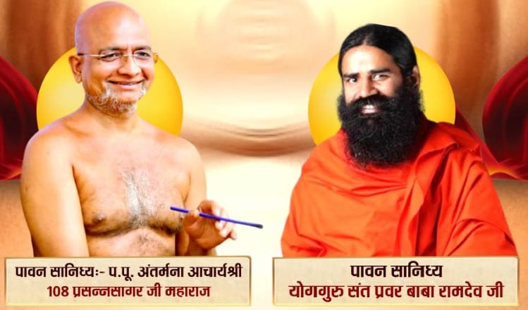 औरंगाबाद । “हर मास एक उपवास” पर आधारित अंतर्मना धार्मिक एवं पारमार्थिक ट्रस्ट तथा पतंजलि योगपीठ हरिद्वार के संयुक्त तत्वाधान में भारत मंडपम, नई दिल्ली में द्विदिवसीय 12 – 13 दिसंबर को विश्वस्तरीय *जनमंगल महोत्सव* का भव्य और एतिहासिक आयोजन होने जा रहा है। यह अद्भुत महोत्सव तपस्वी सम्राट, साधना महोदधी, अंतर्मना आचार्य श्री प्रसन्न सागर जी महाराज के सानिध्य एवं संरक्षण में किया जा रहा है। जिसमें विशेष रूप से विश्व विख्यात योग ऋषि बाबा रामदेव भी अपनी भूमिका का निर्वहन करेंगे। यह कार्यक्रम बनेगा आध्यात्मिक अनुभूतियों और वैज्ञानिक दृष्टिकोण का अद्भुत संगम।