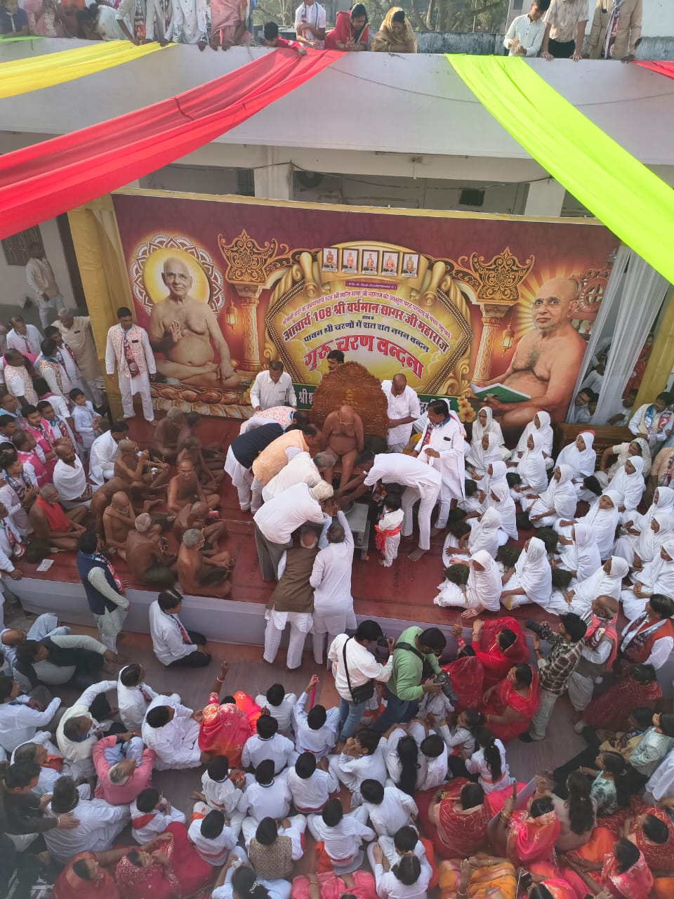 अश्व, बग्घी,हाथी D J,अनेक बैंड बाजे,आचार्य श्री पर ड्रोन कैमरे से पुष्प वृष्टि,57 रजत थालियों में दूध केशर,पुष्प रत्नों से चरण प्रक्षालन ,3 km की रांगोली,76 से अधिक स्वागत द्वार नगर के अनेक सामाजिक ,धार्मिक मंडलों सहित नगर के सभी धर्मों की सहभागिता आकर्षण का केंद्र रही।