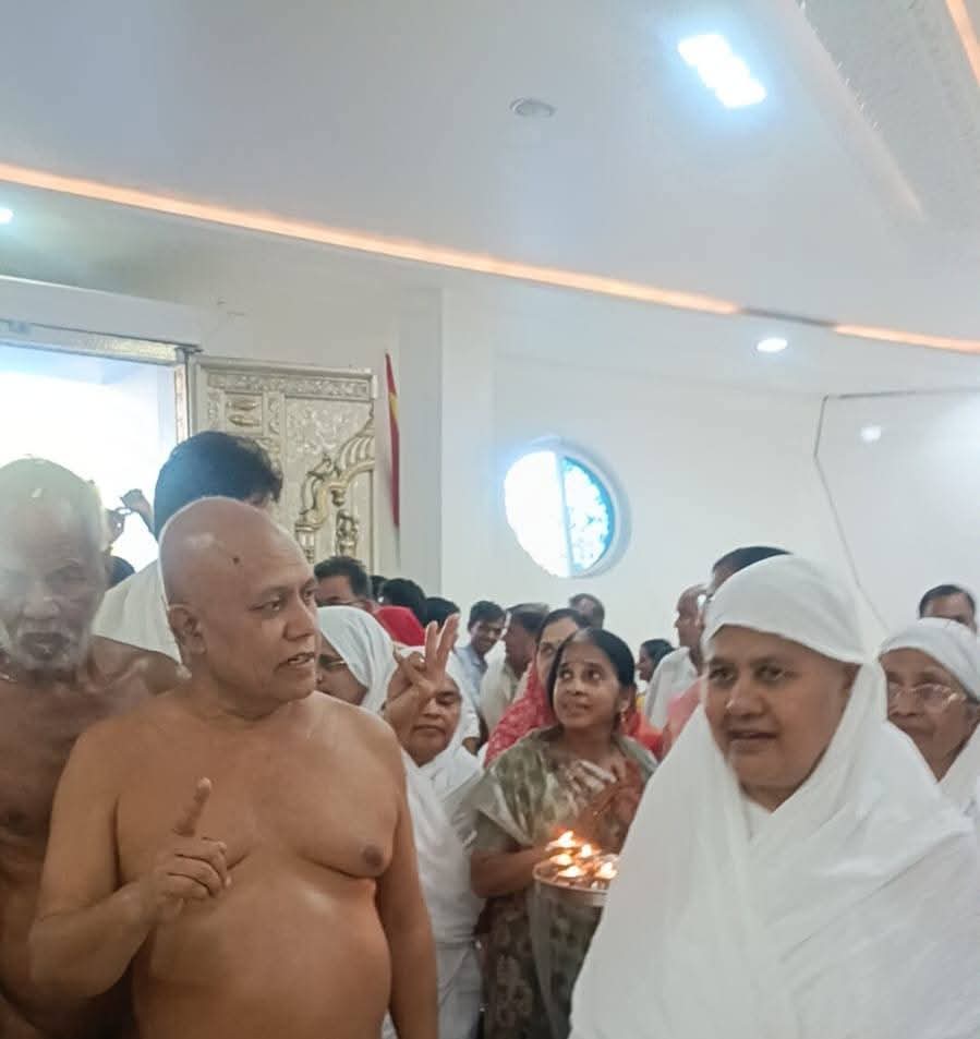 पुरानी स्मृति को बताते हुए उन्होंने कहा कि बचपन में इन्होंने मुझे ब्रह्मचारी अवस्था में देखा लेकिन किसे पता था कि संगीता स्वस्तिभुषण माताजी बनेगी। प्रभावना के विषय में आचार्य श्री ने कहा कि धर्म की प्रभावना पिच्छिधारी साधुओं से होती है। मेने आह्वान किया इसीलिए लोग पदयात्रा में आए और पैदल चले। उन्होंने कहा मैं तो बहुत आनंदित हूं स्वस्तिधाम आकर मुनिसुव्रत भगवान के दर्शन करके और बहुत आनंदित हूं आप सभी को देखकर